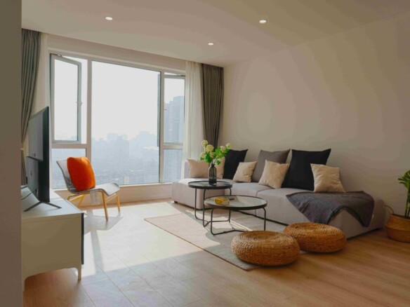 Elegant 4-Bedroom Modern Apartment with Floor-to-Ceiling Windows in Xuhui