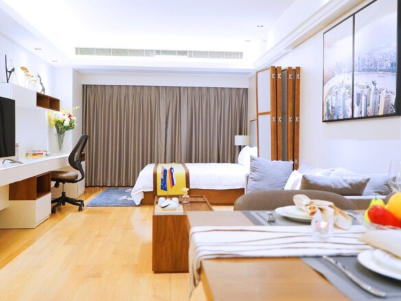 Modern Serviced 1-Bedroom Apartment with Prime Transit Access in Jing’an
