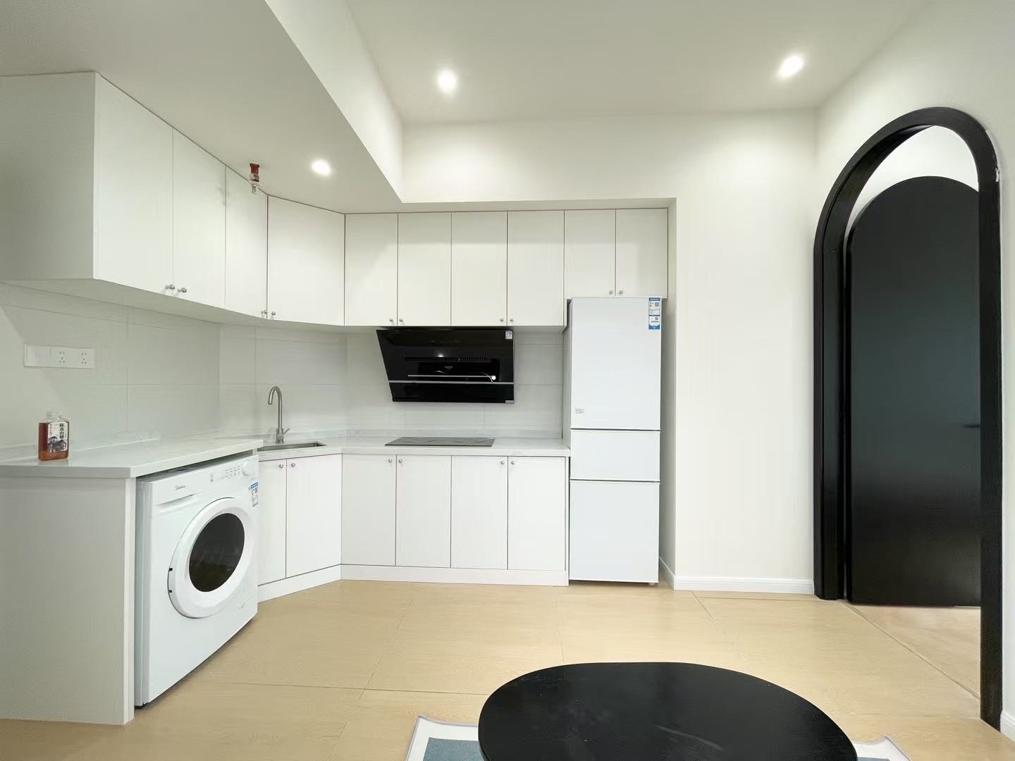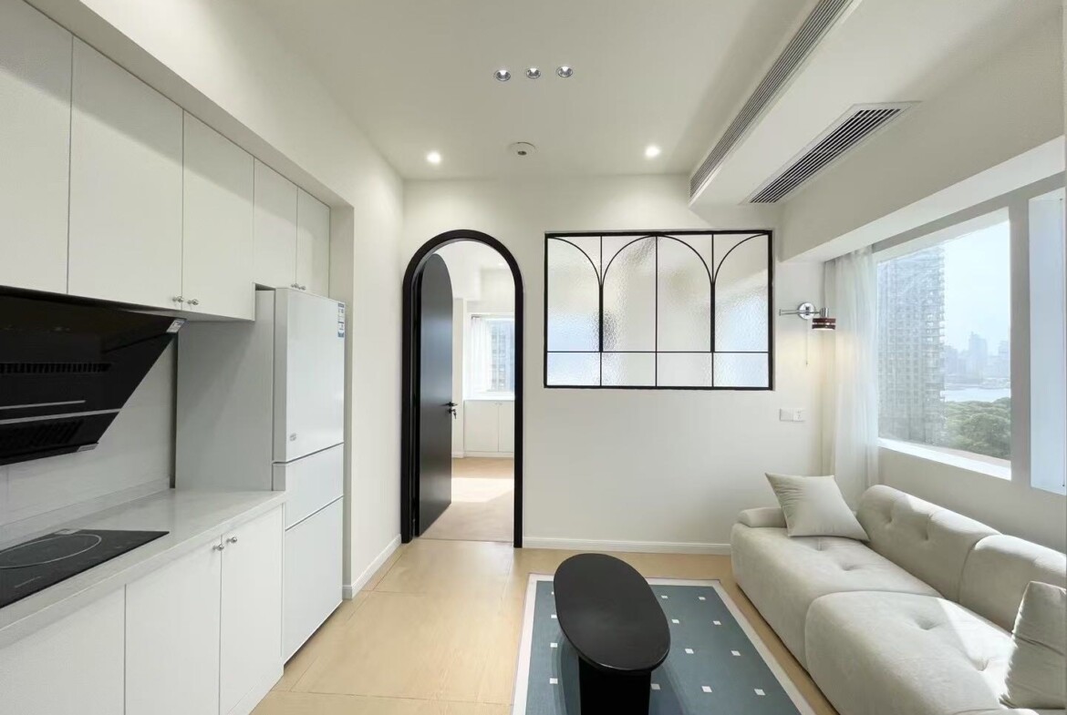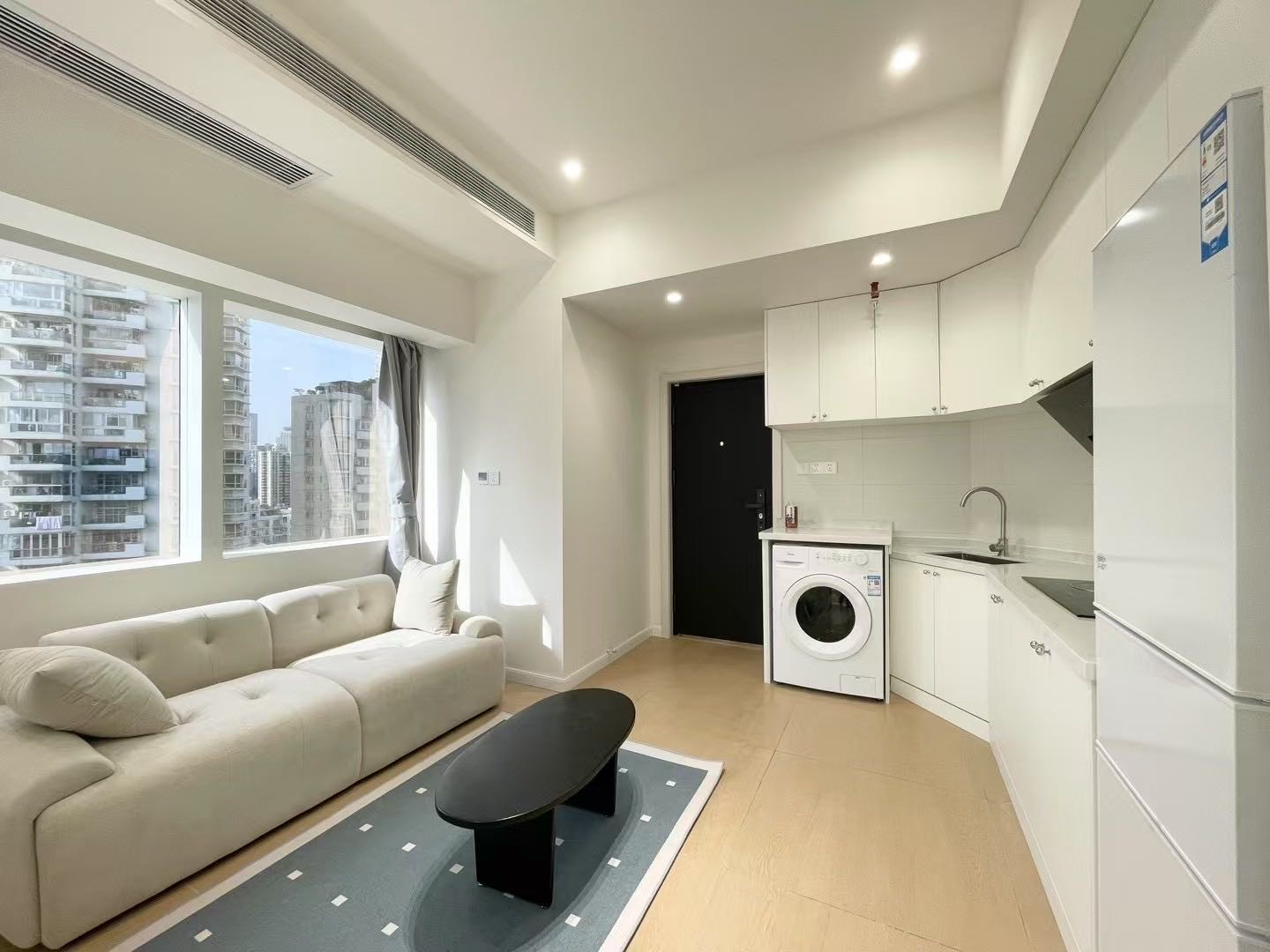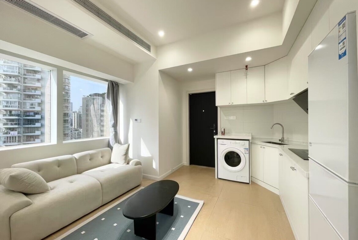 This first-rental, fully renovated one-bedroom in Tomson Commercial Center balances polished design with everyday practicality, ideal for an urban professional or a couple seeking a smart home base in Pudong‘s premier business hub. Floor-to-ceiling windows draw in generous natural light and frame open city vistas, while quiet double glazing helps keep the interior serene. An inviting balcony extends your living space for morning coffee or an evening pause above the neighborhood bustle, adding rare outdoor space to a central address.