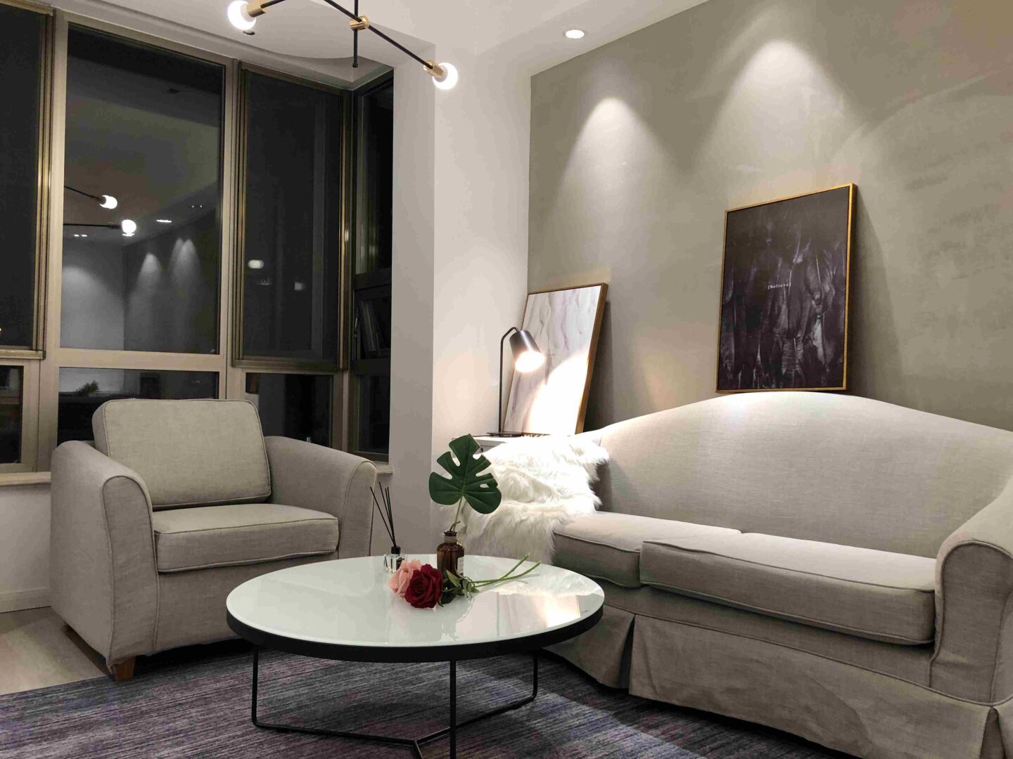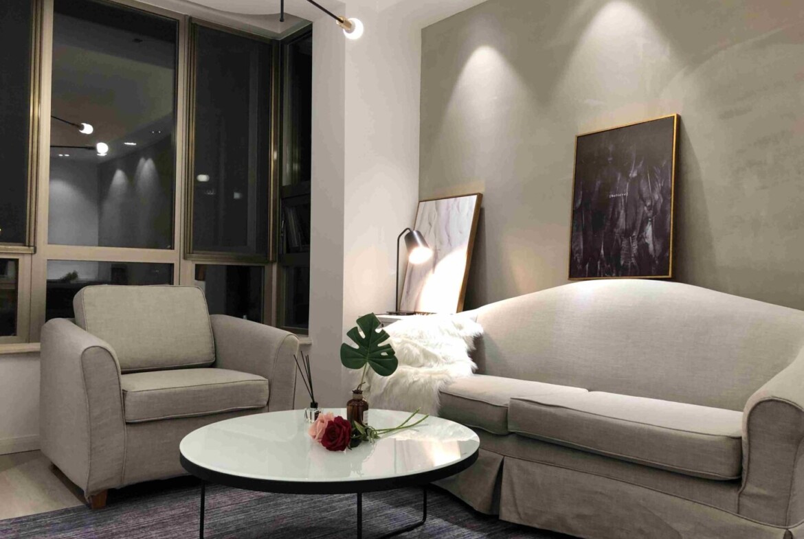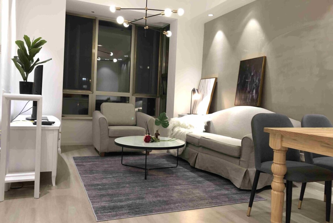 This first-rental one-bedroom at Xuhuiyuan Zhizhen Serviced Apartments blends crisp, contemporary finishes with practical comforts designed for Shanghai’s seasons. A welcoming living area is framed by neutral tones and clean-lined furnishings, making it equally suited to relaxed evenings or video calls with colleagues abroad. Split air conditioning keeps summers cool, while dedicated heating ensures winter warmth, a genuine plus in the city.