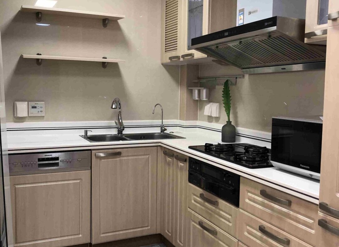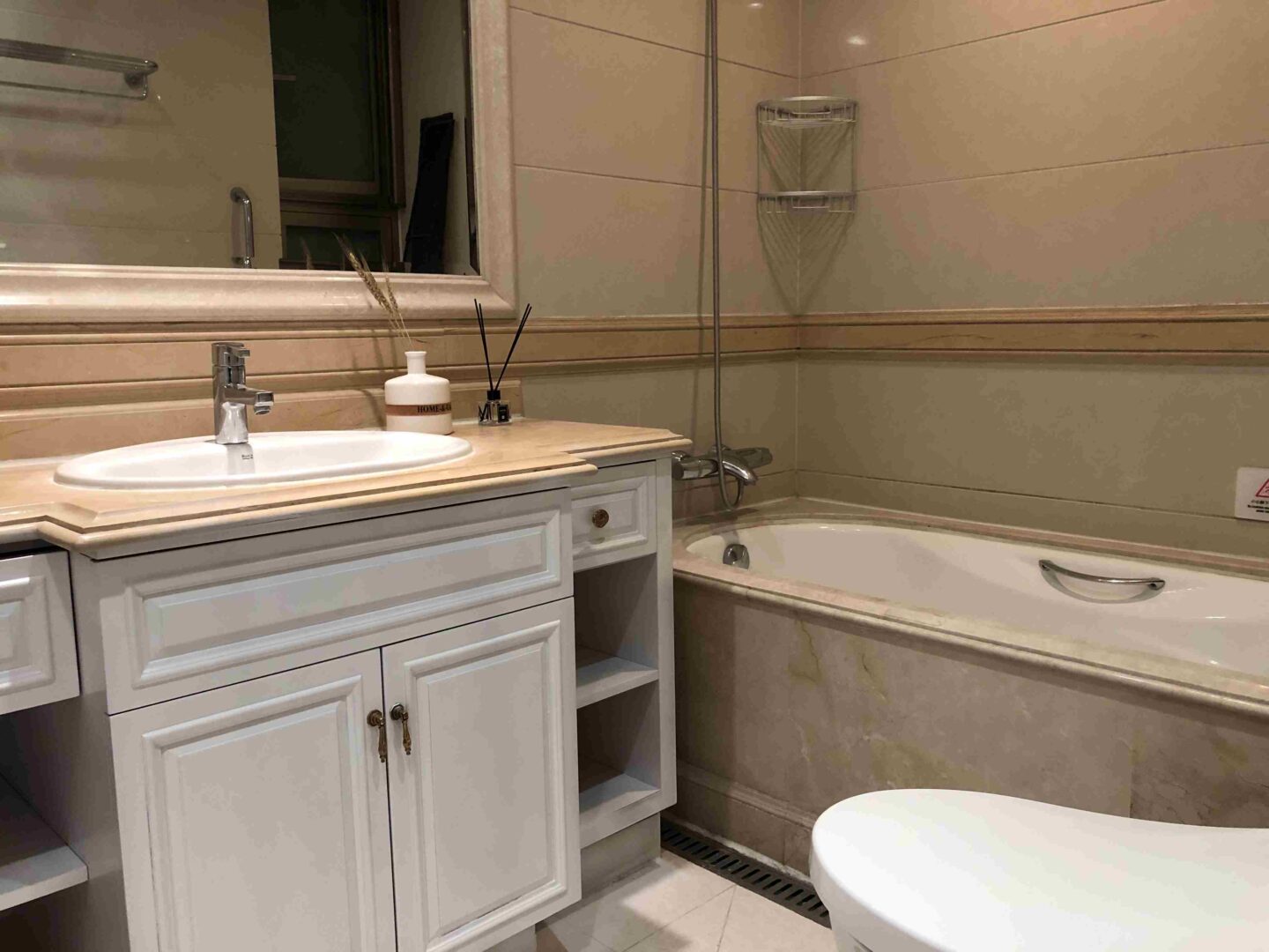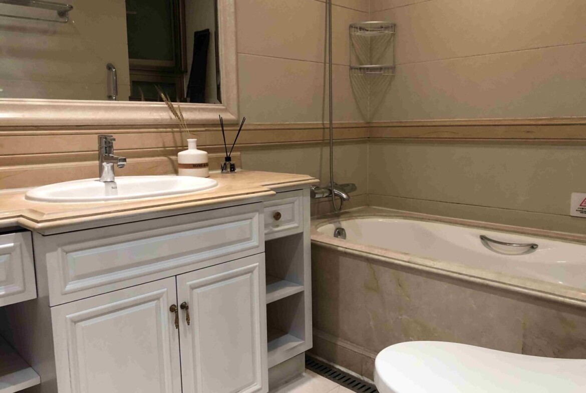 The fully renovated kitchen features gas cooking preferred by serious home cooks, with efficient storage and sleek countertops that stand up to everyday use. In the bathroom, the rare inclusion of a bathtub invites spa-like downtime after a busy day in Xujiahui. The bedroom comfortably fits a double bed and wardrobe, offering a quiet retreat from the bustle outside.