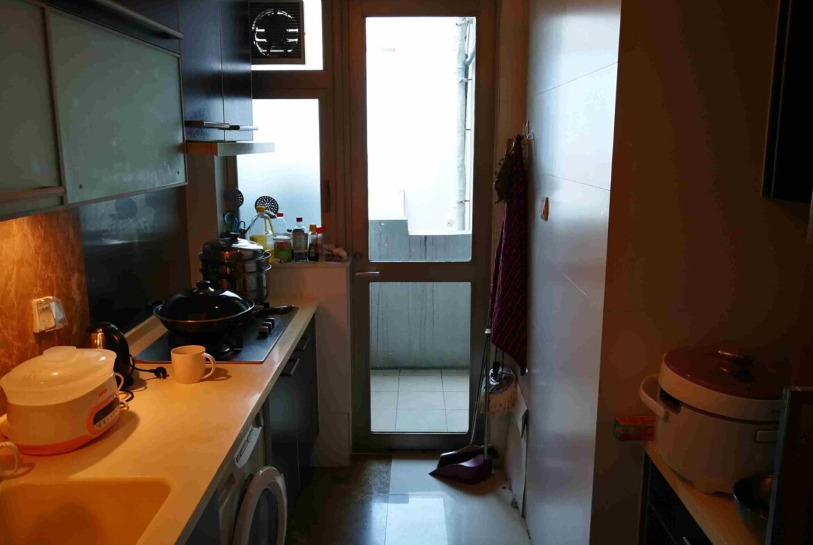 The streamlined kitchen balances smart storage with everyday practicality, featuring modern cabinetry, a full-size refrigerator, an efficient cooktop, and durable countertops designed for quick prep and easy cleanup. Both bathrooms are elegant and functional. The primary suite enjoys an en-suite with a bathtub that is rare in Shanghai, perfect for unwinding after a busy day, while the guest bathroom offers a fresh, hotel-style shower.