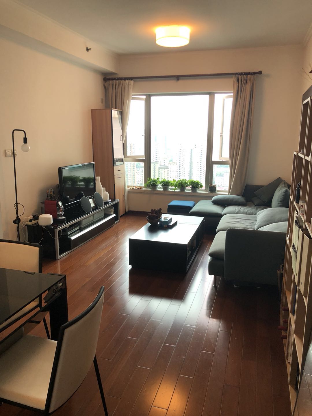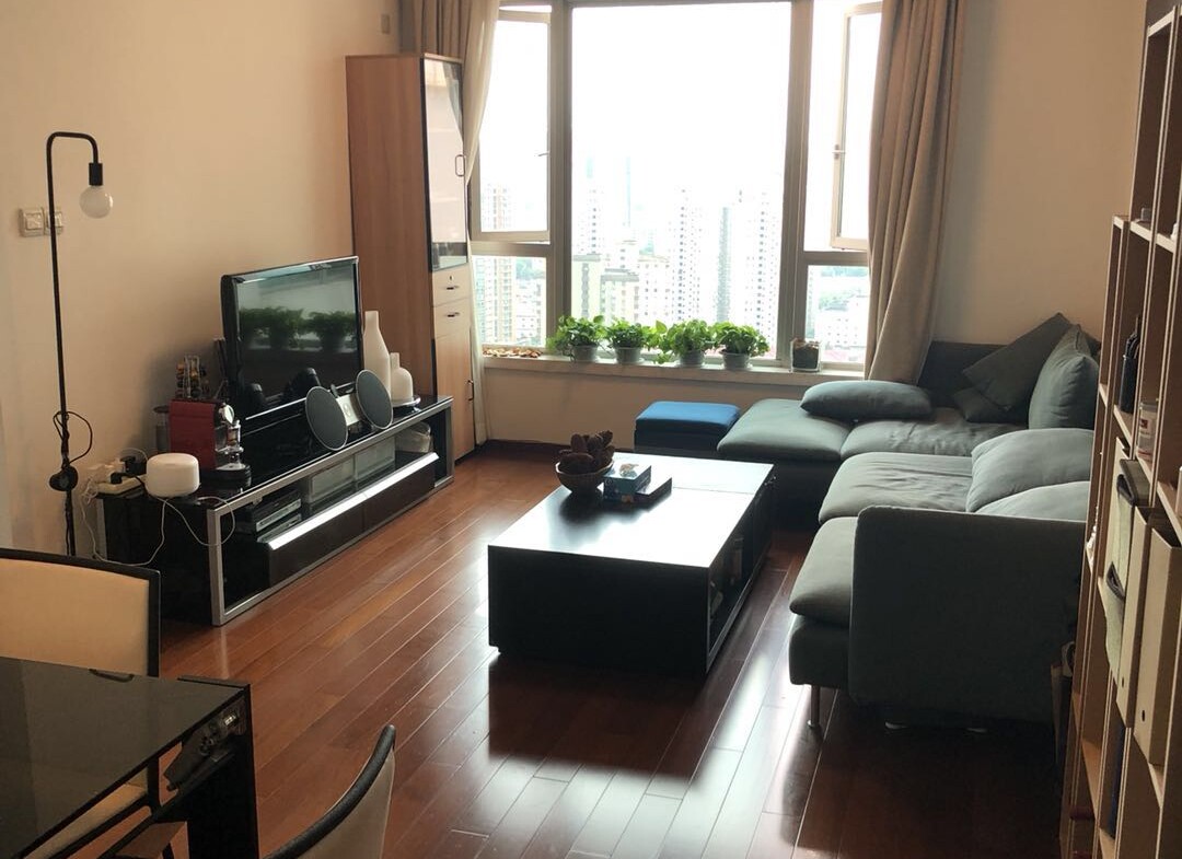 This fully renovated 2-bedroom, 2-bathroom home rises high above the treetops in Wellington Garden, catching long views across downtown Xujiahui. Wide windows draw in natural light from morning to late afternoon, creating a calm, airy setting for both relaxing and entertaining. The living and dining area has been thoughtfully arranged to keep sightlines open, while a neutral palette and quality flooring deliver a polished, international feel that is easy to personalize.