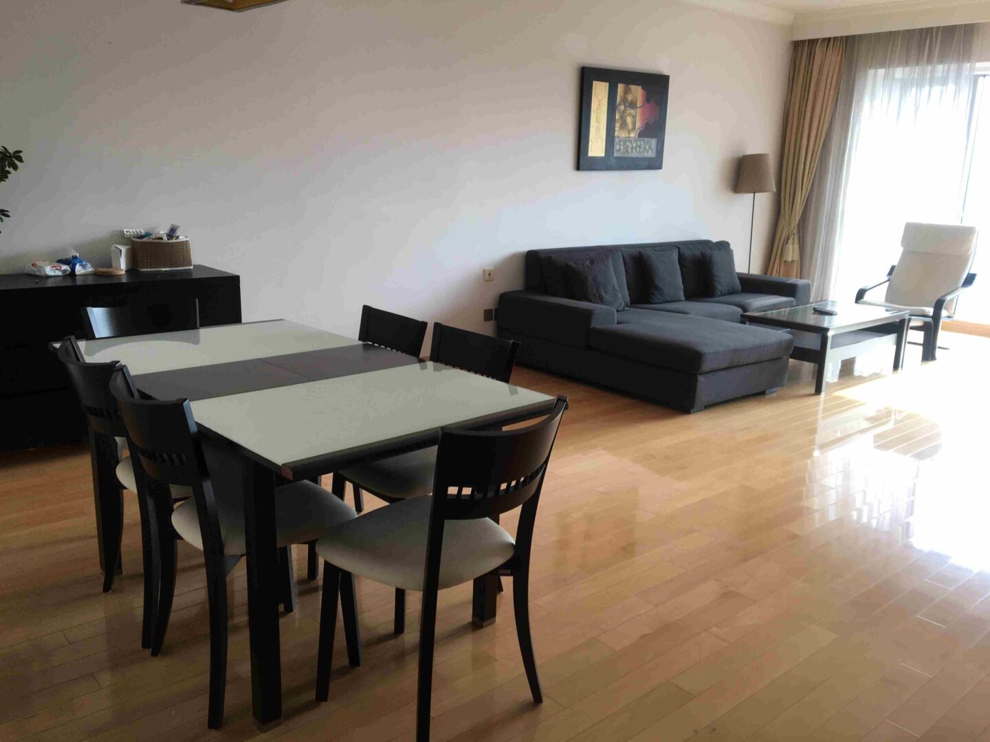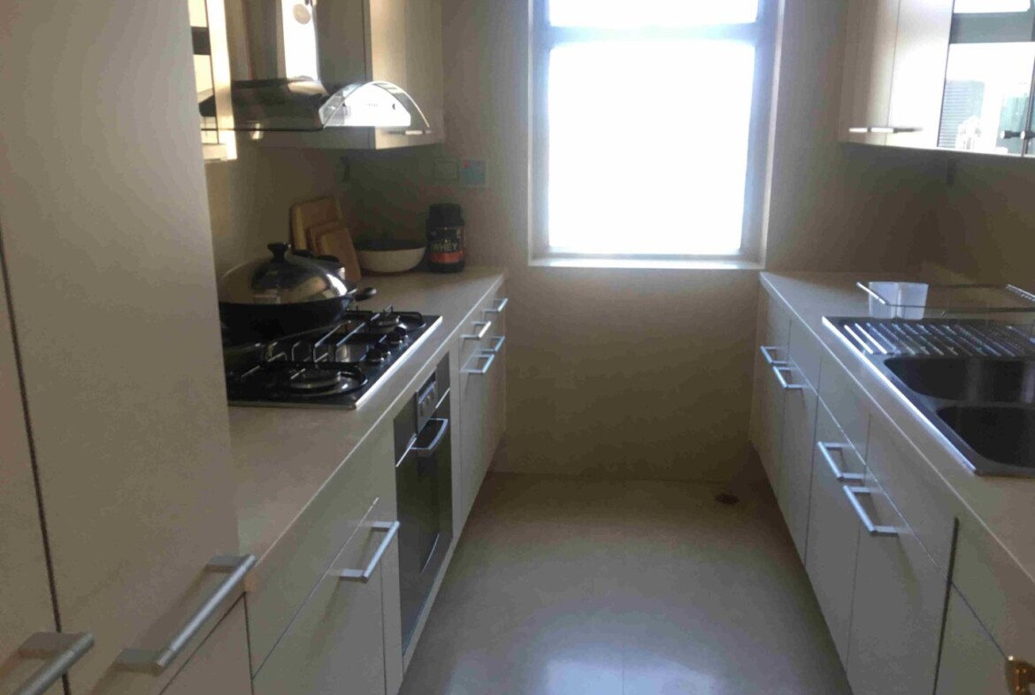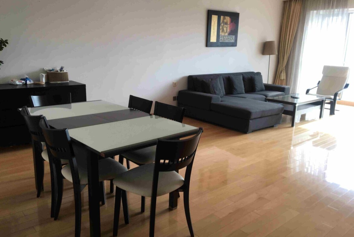 This thoughtfully arranged Shanghai apartment for rent rises high above the Lujiazui skyline, offering a calm, contemporary retreat with broad city outlooks. The living and dining area is framed by floor-to-ceiling windows that draw in natural light throughout the day, creating an uplifting atmosphere for everyday living and relaxed entertaining. A modern, enclosed kitchen keeps cooking neatly contained, while abundant storage helps maintain a streamlined aesthetic.