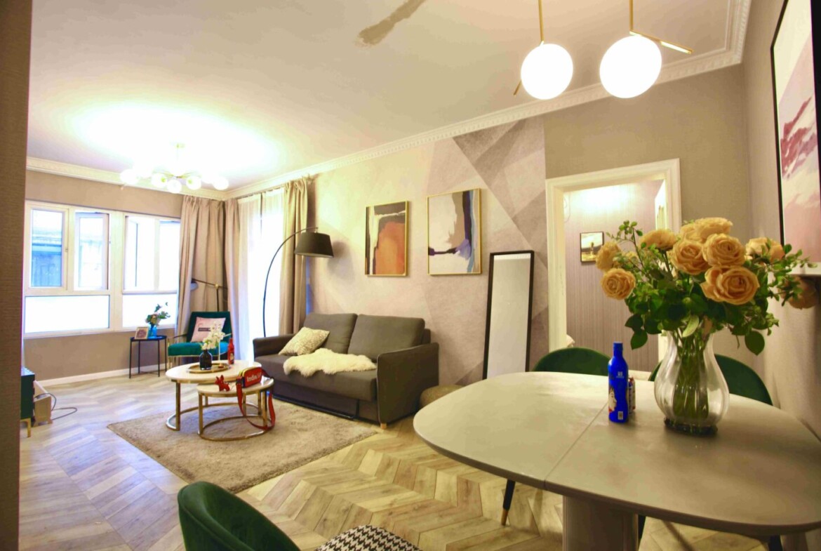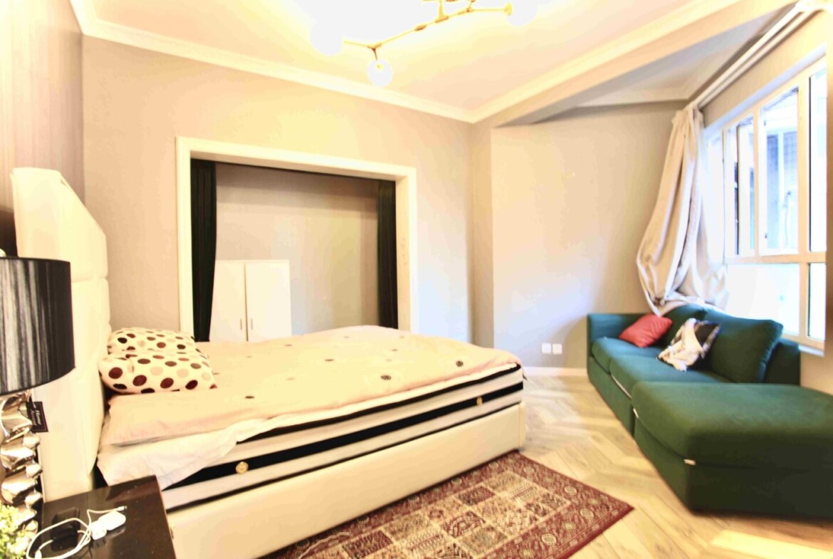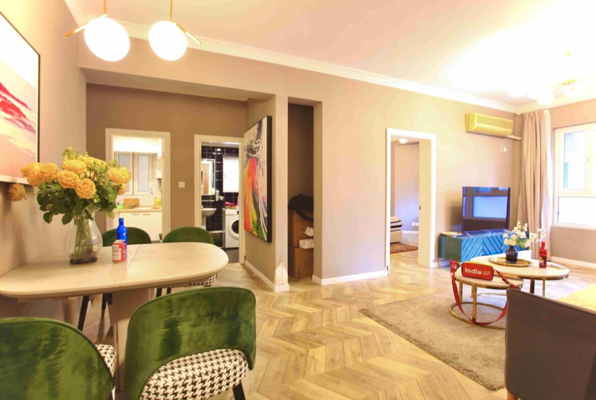 Step into a calm, contemporary home set within the coveted Weihai Garden enclave near People’s Square. This fully renovated two-bedroom, one-bath layout balances comfort and practicality, ideal for a couple, a small family, or a professional seeking a dedicated home office. Clean architectural lines, a soft neutral palette, and well-considered lighting create a bright, polished atmosphere that feels immediately livable.