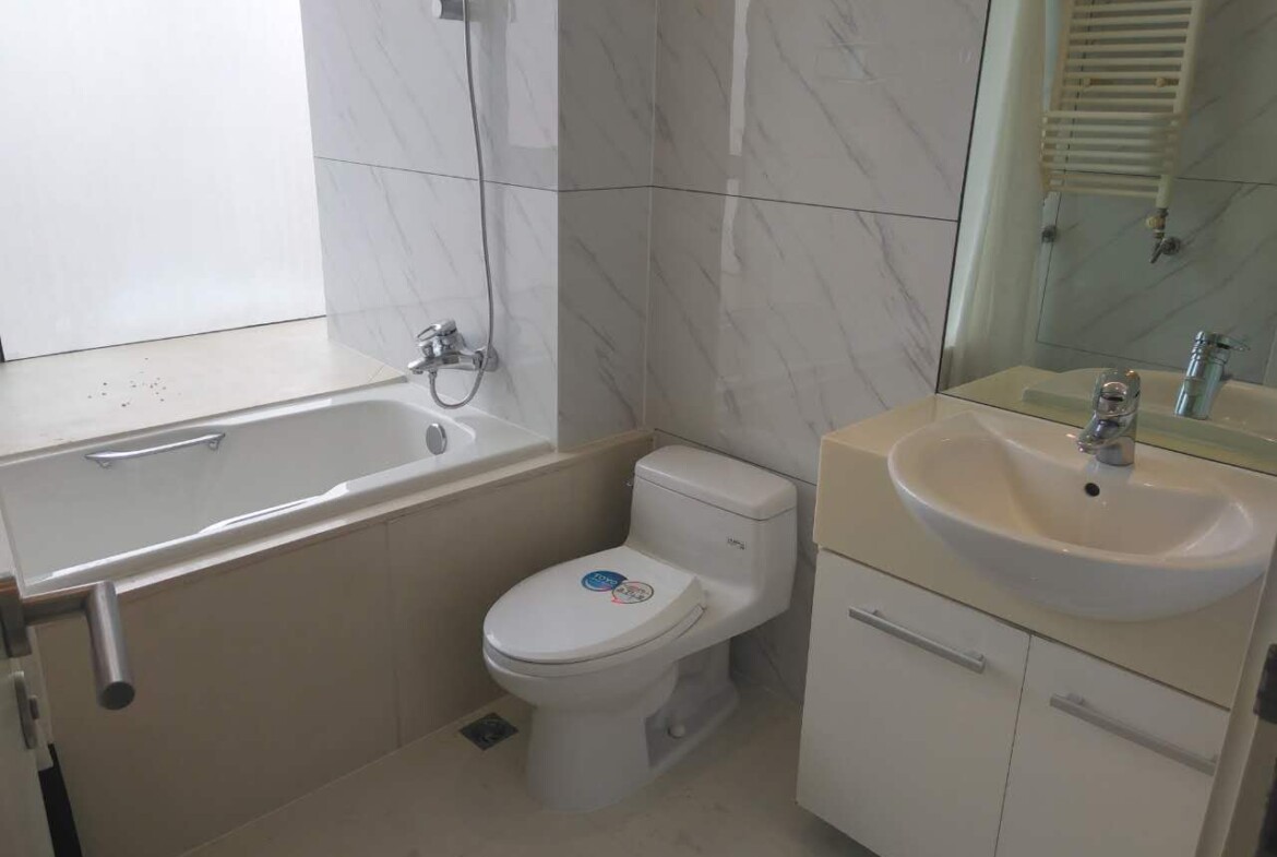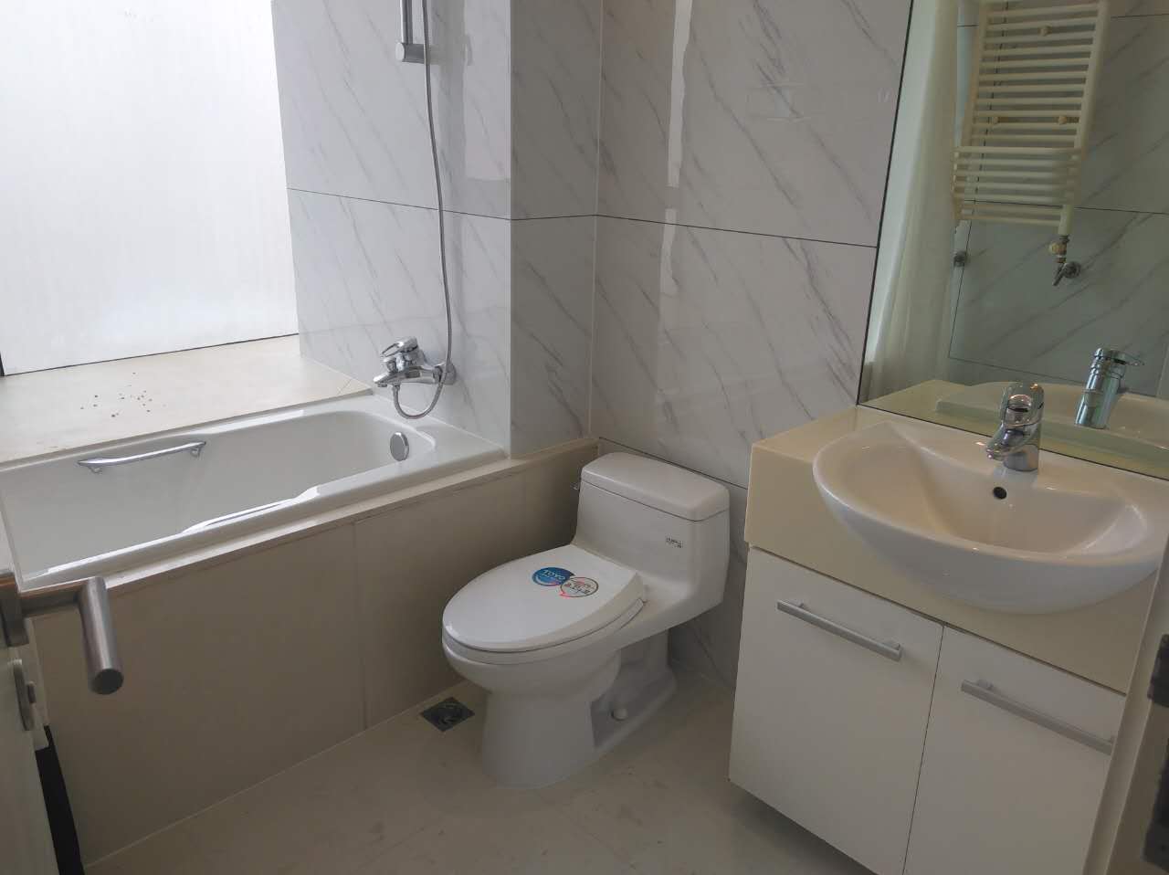 Year-round comfort is assured by central air conditioning, complemented by individual controls that help you set the perfect temperature through humid summers and cooler months. The kitchen offers sensible counter space and cabinetry for everyday cooking, with room to add small appliances and create a more Western-style prep zone if desired. Two well-proportioned bathrooms lessen the morning rush, and the inclusion of a bathtub is a rare Shanghai luxury, ideal for soothing post-commute evenings or bath time with little ones.