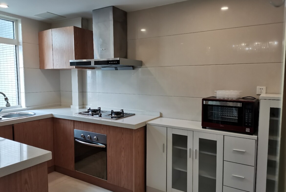 Thoughtfully upgraded from top to bottom, this fully renovated three-bedroom, two-bathroom apartment in Shanghai Dynasty blends calm aesthetics with practical features ideal for international lifestyles. The open, well-proportioned living and dining area invites conversation and easy entertaining, while large windows bring in soft natural light throughout the day. A modern kitchen with quality cabinetry and plentiful counter space supports weeknight meals and weekend brunches alike, and the two sleek bathrooms feature updated tiling and fixtures for a spa-clean feel.