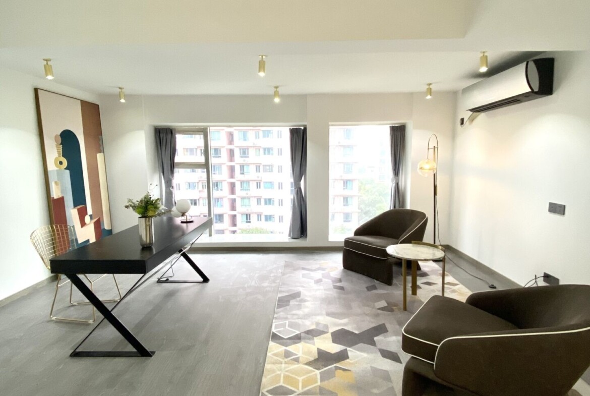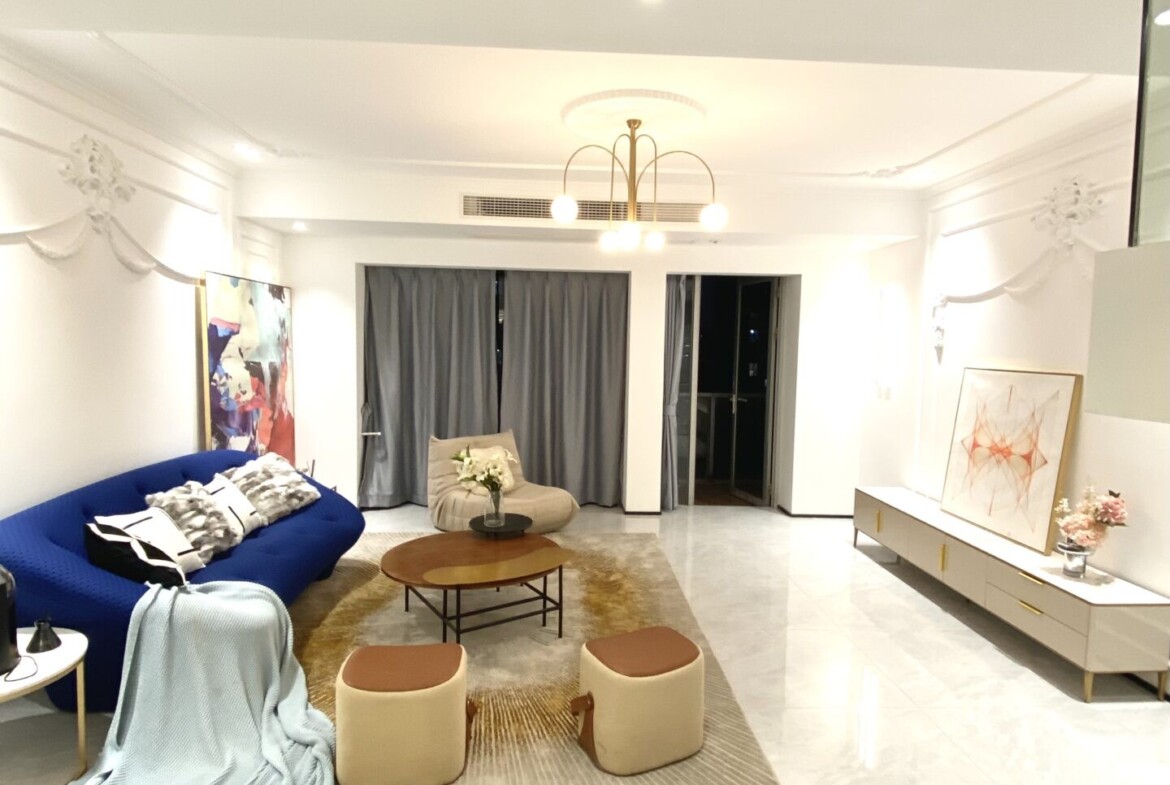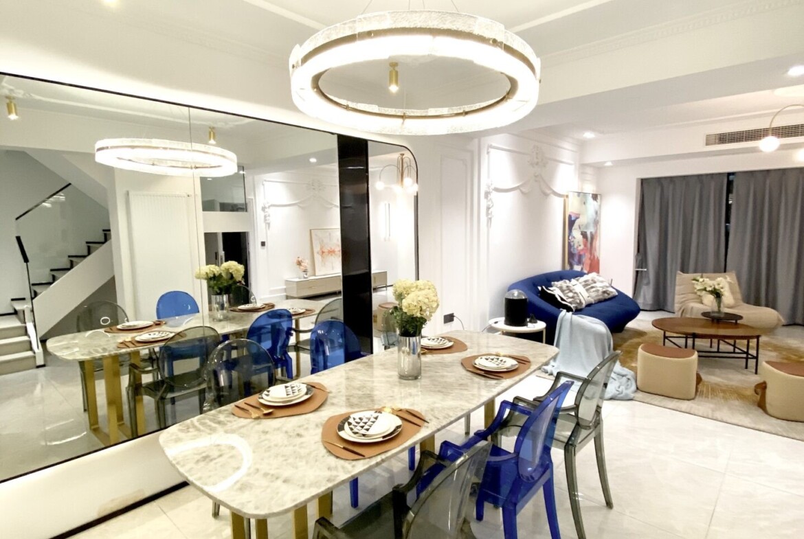 Set on the top floor, the duplex enjoys privacy and open sky views, yet remains grounded by tranquil garden outlooks. Storage has been intelligently integrated throughout to keep life streamlined. With the convenience of being near the subway for fast access to Pudong‘s business and leisure destinations, this residence balances elegance and ease for families and professionals who value space, light, and a refined, move-in-ready home.