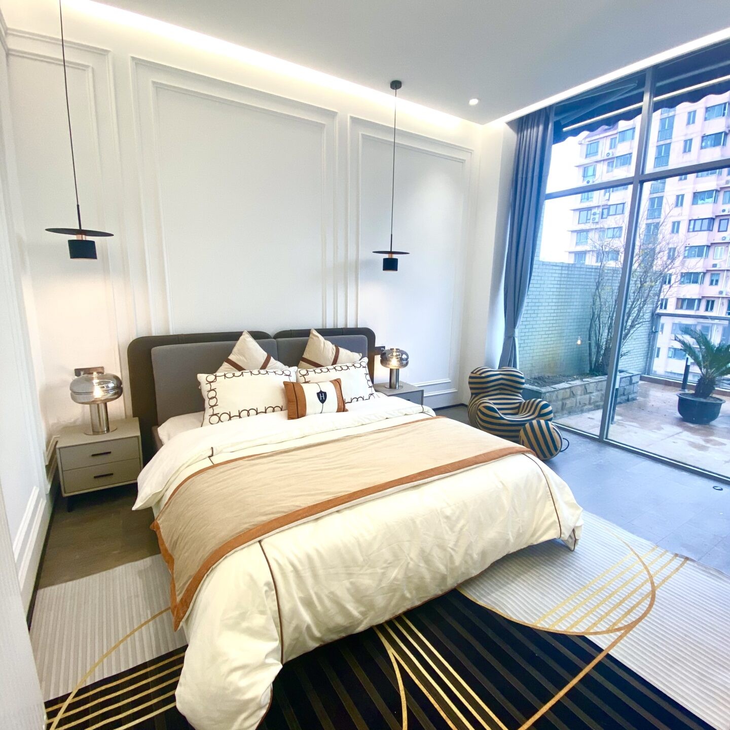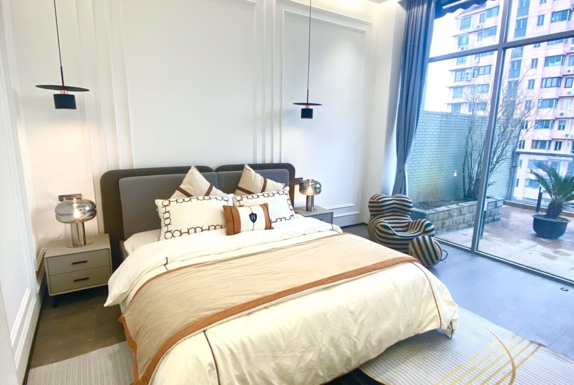Light, air, and outdoor living: Floor-to-ceiling windows and a sunlit terrace bring Shanghai’s blue-sky days indoors. Garden outlooks soften the city feel, and the top-floor position adds privacy for yoga sessions, alfresco dinners, or quiet reading.