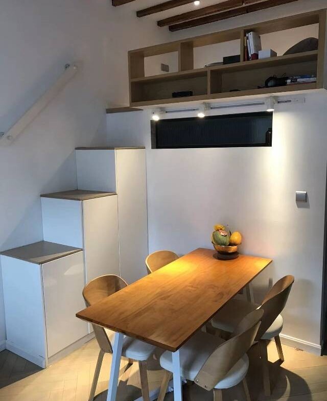 This inviting 1-bedroom, 1-bathroom lane house blends historic charm with a fully renovated interior tailored to modern city living. A wall of floor-to-ceiling windows draws soft natural light into the open-plan living area and frames views of the home’s private, cute yard — a rare slice of outdoor calm in this sought-after pocket of the Former French Concession. Inside, the renovation focuses on practical elegance: clean-lined cabinetry, refreshed flooring, quality fixtures, and smart lighting create a soothing backdrop for your personal style.