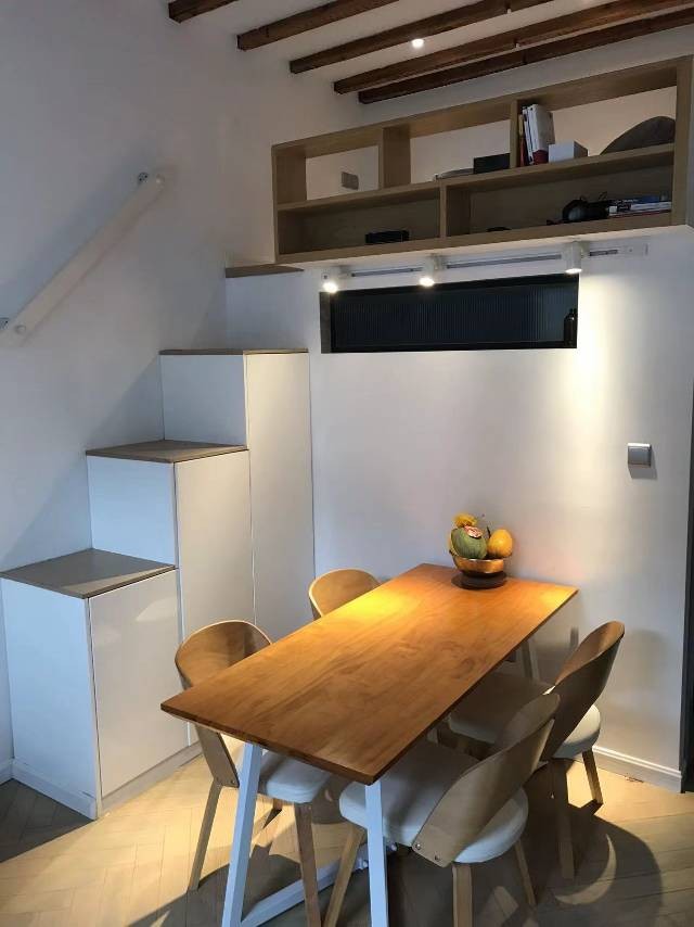Top-Floor 2-Bed Lane House with Exposed Beams in Xuhui