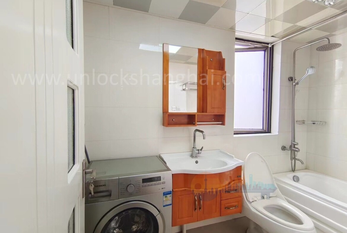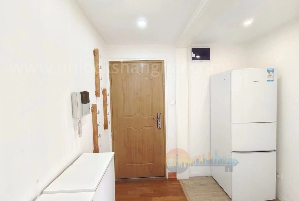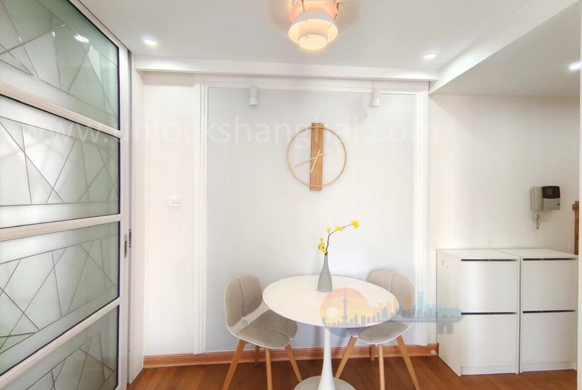 The spacious bedroom offers a serene retreat with ample storage, ideal for organizing your essentials after a long day in the city. A sleek, well-appointed bathroom adds to the sense of luxury and ease. The apartment’s layout is especially suited for a single expat or professional seeking privacy and tranquility without sacrificing connectivity to the pulse of Shanghai.