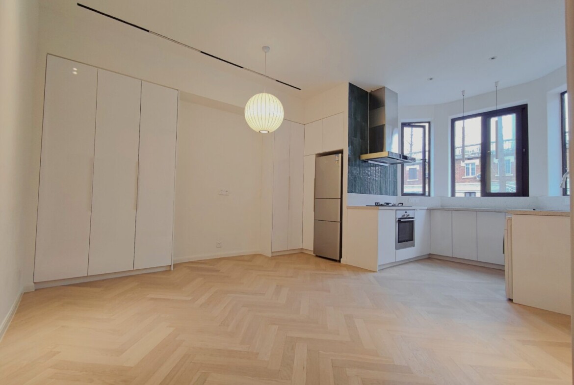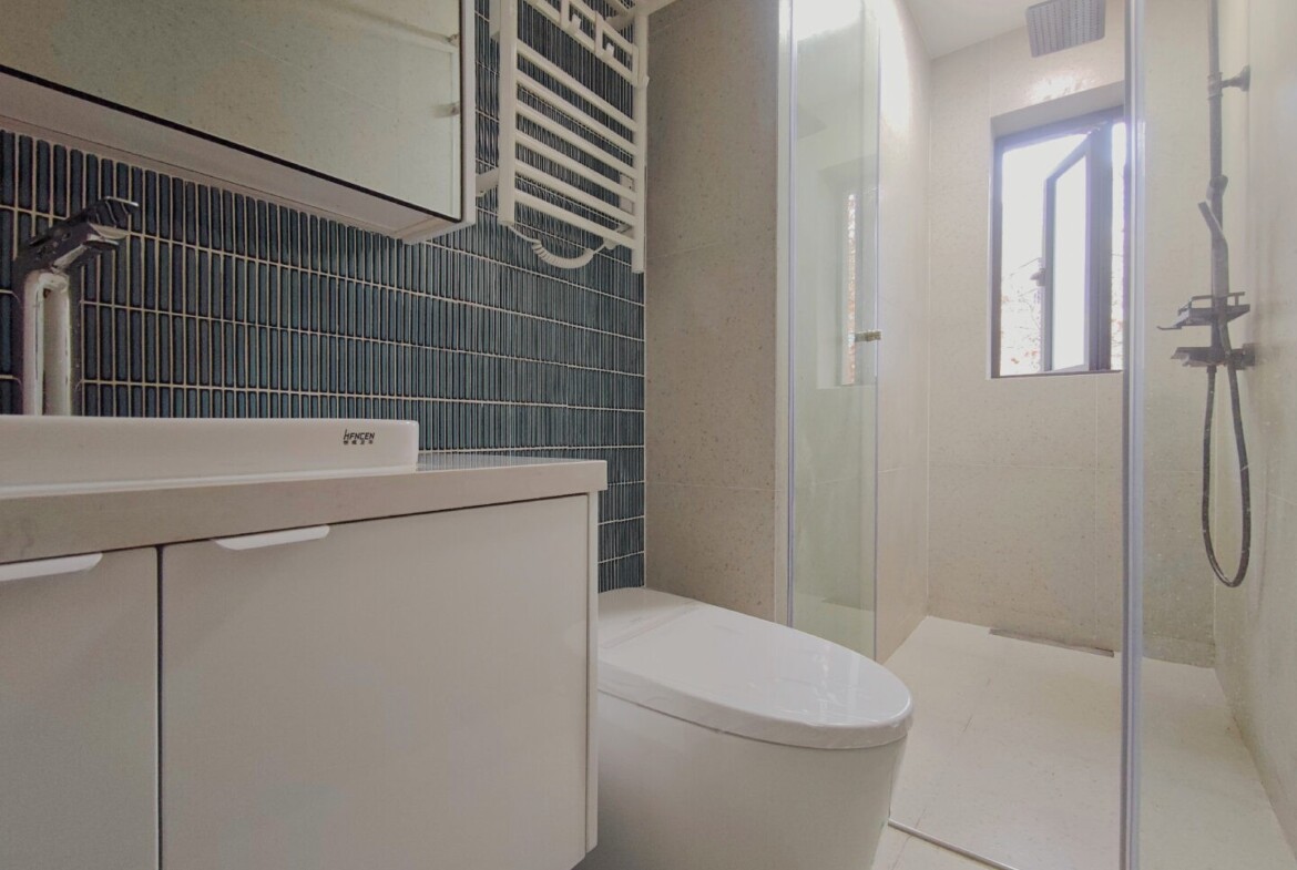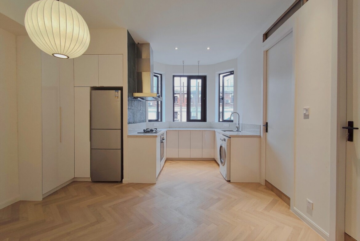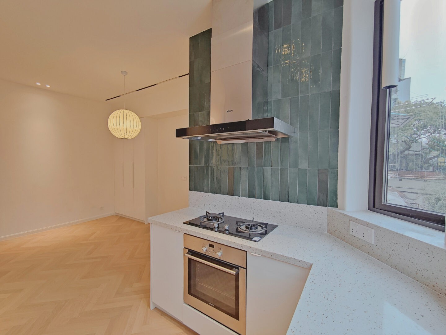 This bright one-bedroom, one-bathroom home sits within a traditional lane house on Nanchang Road, blending old-world character with a fully renovated interior that is ready for modern city living. Natural light pours into the living area, creating a warm, uplifting ambiance that suits both relaxed evenings and productive work-from-home days.