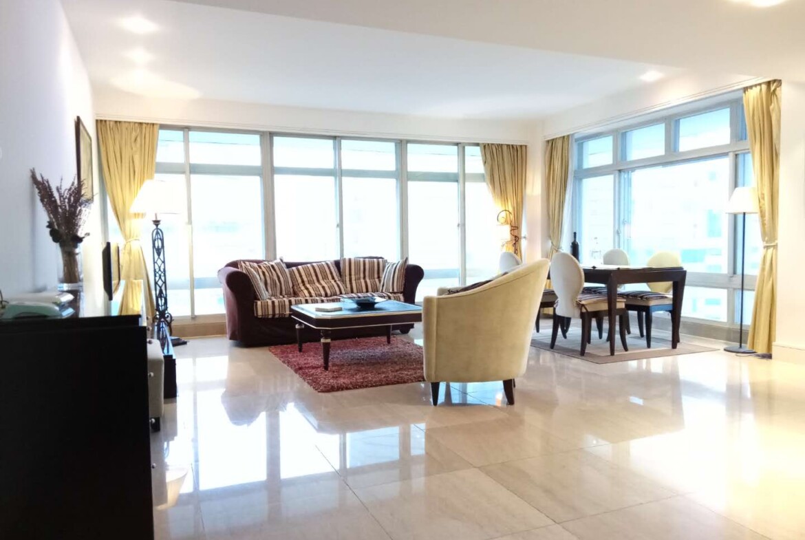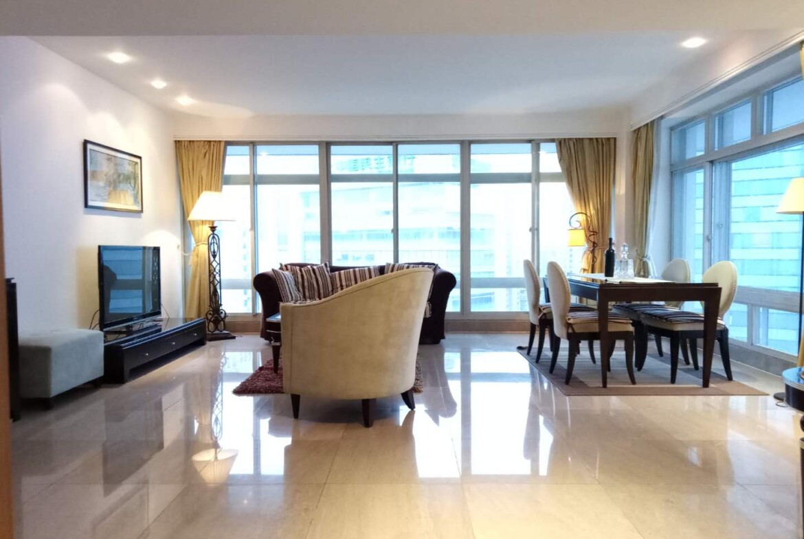 This spacious 2br apartment with large windows at Huijin Plaza has been designed for both comfort and practicality. A bright living room area anchors the home, framed by generously sized windows that welcome morning and afternoon light while offering a pleasant urban outlook. The open living-dining zone is ideal for relaxed evenings or a focused work-from-home setup, with enough wall space for shelving and art without crowding the room.