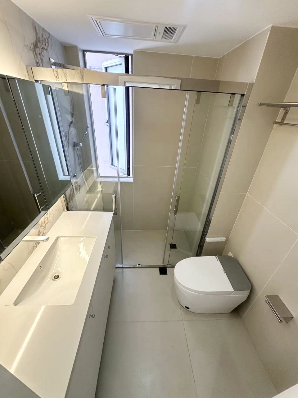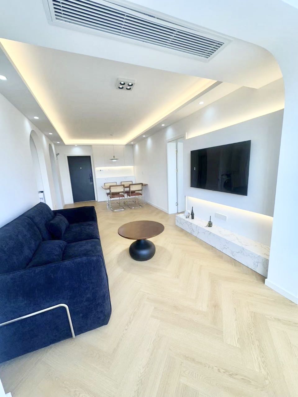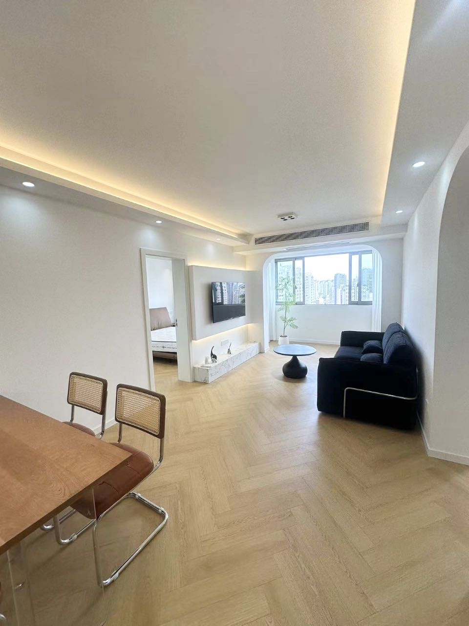 This Shanghai apartment for rent in Jiaoshi Gongyu blends fresh renovation with practical comfort, ideal for professionals or a small family seeking a central-city base with a neighborhood feel. The floor plan is intelligently arranged, with two well-proportioned bedrooms offering flexibility for a primary suite and a dedicated study or nursery. A sunlit living and dining area forms the heart of the home, with clean lines, neutral finishes, and modern lighting that create a calm, contemporary atmosphere.