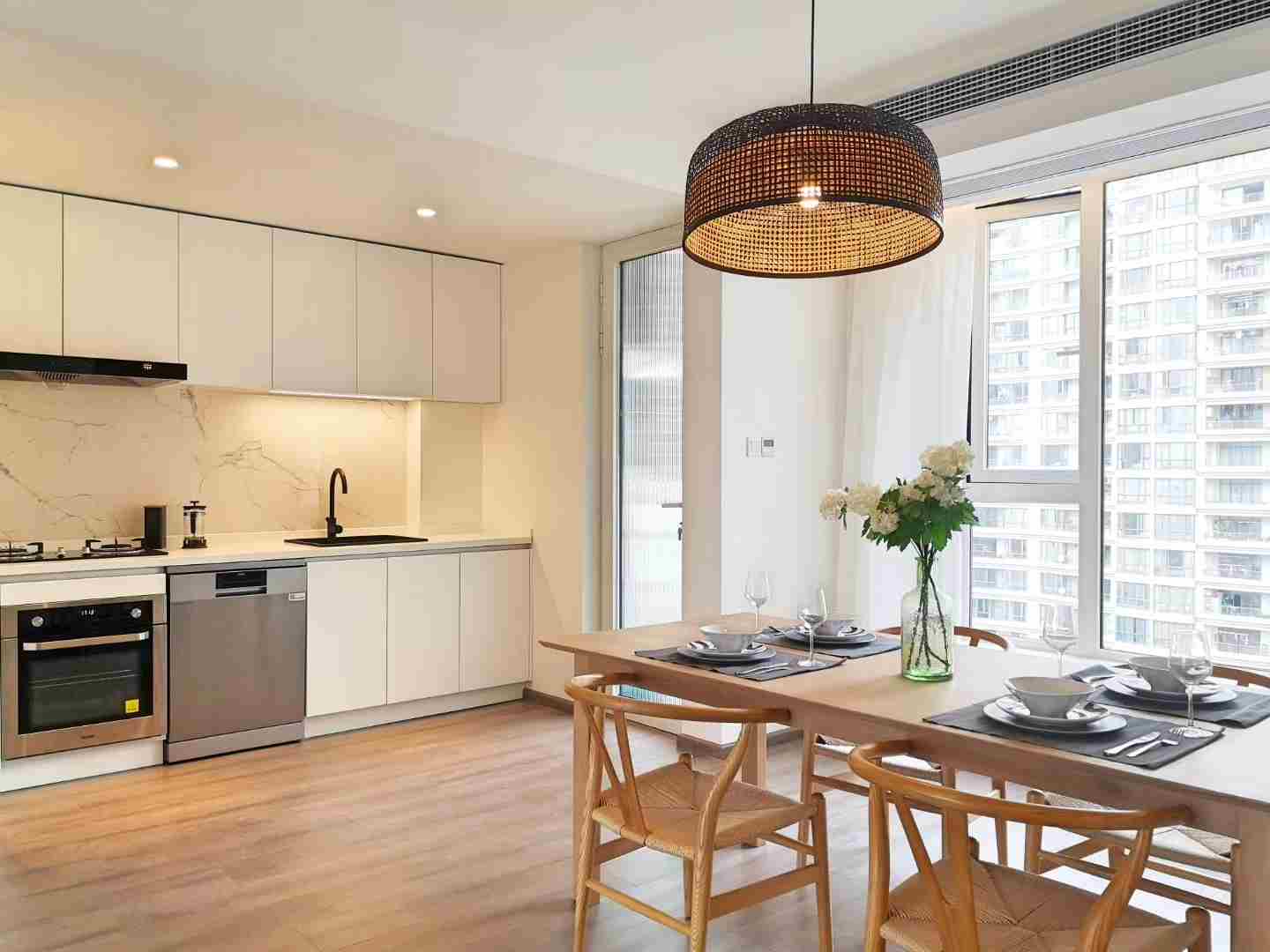Practical details are as considered as the aesthetics: durable flooring, streamlined storage solutions, and a layout that balances privacy and togetherness. The setting is remarkably convenient yet pleasantly tranquil. You’re a short stroll from West Nanjing Road Station (Lines 2, 12, 13): one stop to People’s Square, swift links to Jing’an Temple, Lujiazui, and Line 2 connections to both airports. Simply bring your suitcases; everything else has been thoughtfully prepared.
