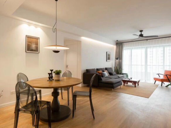 This fully renovated apartment pairs modern comfort with a coveted central location near Jing’an Temple. Thoughtfully arranged across three bedrooms and one bathroom, the home welcomes you with floor-to-ceiling windows that draw in soft natural light throughout the day. A serene private garden and a sun-kissed balcony extend the living experience outdoors, creating tranquil corners for morning coffee, weekend barbecues, or a potted herb collection.