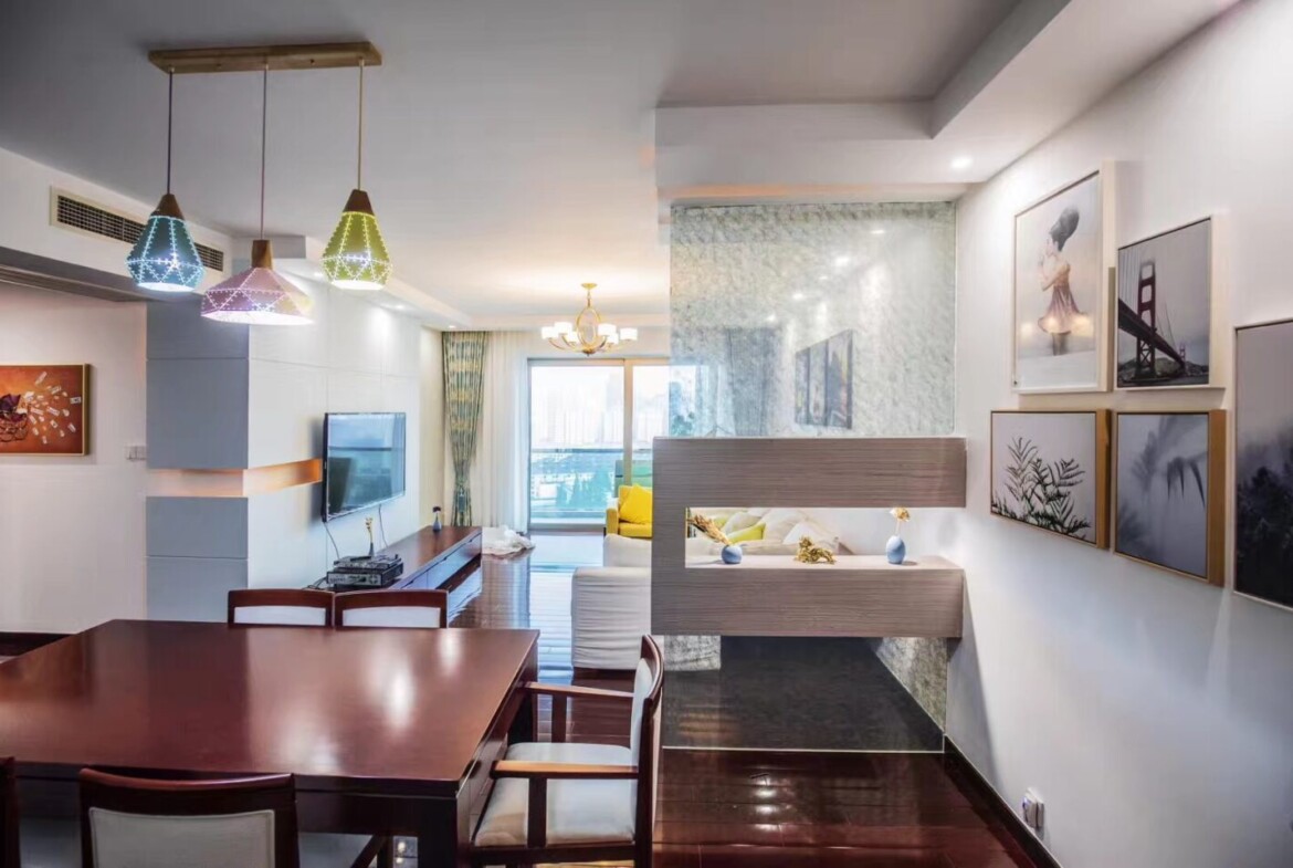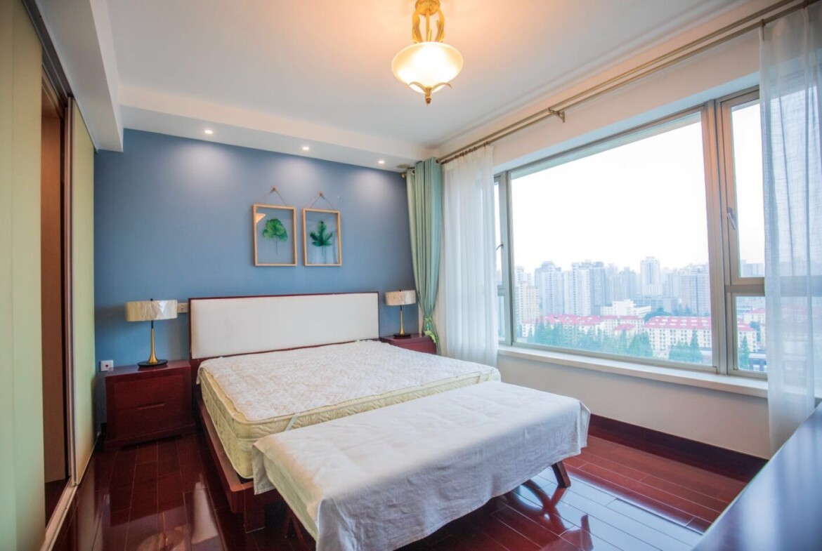 Comfort in all seasons: The apartment’s air conditioning helps you stay cool during Shanghai’s humid summers and adds comfort in the cooler months. Bright windows and thoughtful finishes enhance the home’s calm ambiance.