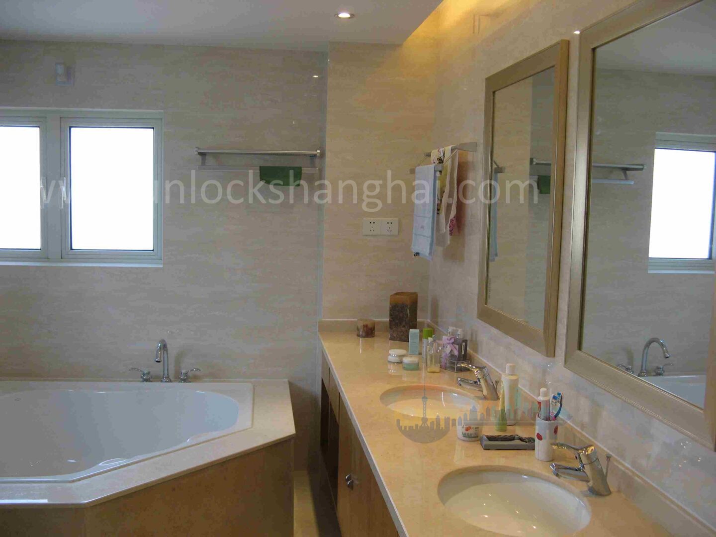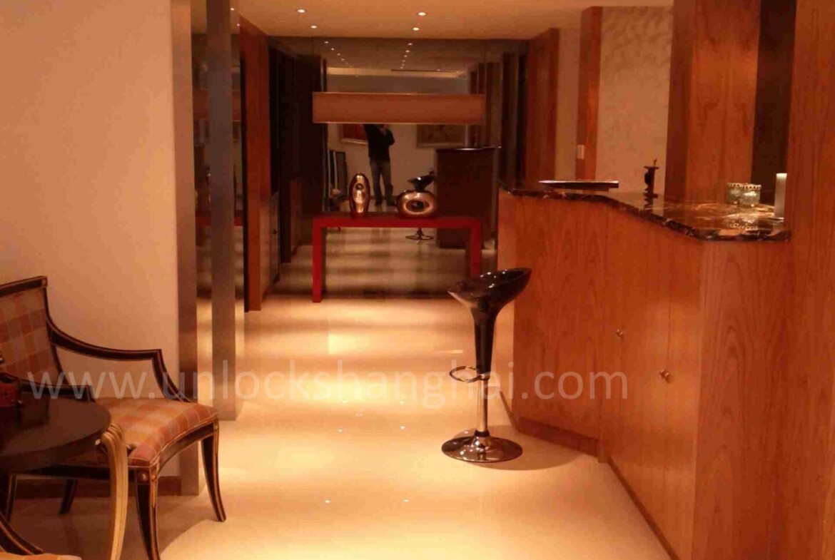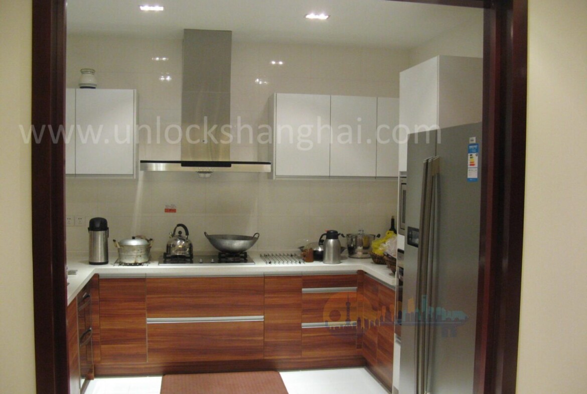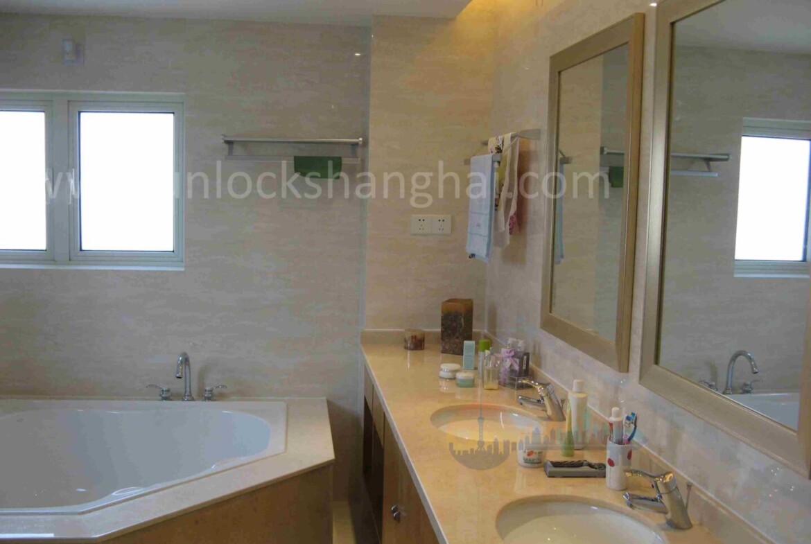 Comfort is effortless with central air conditioning and heating, calibrated for Shanghai’s humid summers and crisp winters. The primary suite offers a soothing retreat with a modern bathtub, complemented by two additional well-fitted bathrooms. Four serene bedrooms allow flexibility for a nursery, guest room, and home office. The kitchen is designed for everyday cooking and casual entertaining, pairing practical storage with full-size appliances, while a laundry area keeps routines organized. High-speed WiFi is ready on day one, making work calls and streaming seamless.