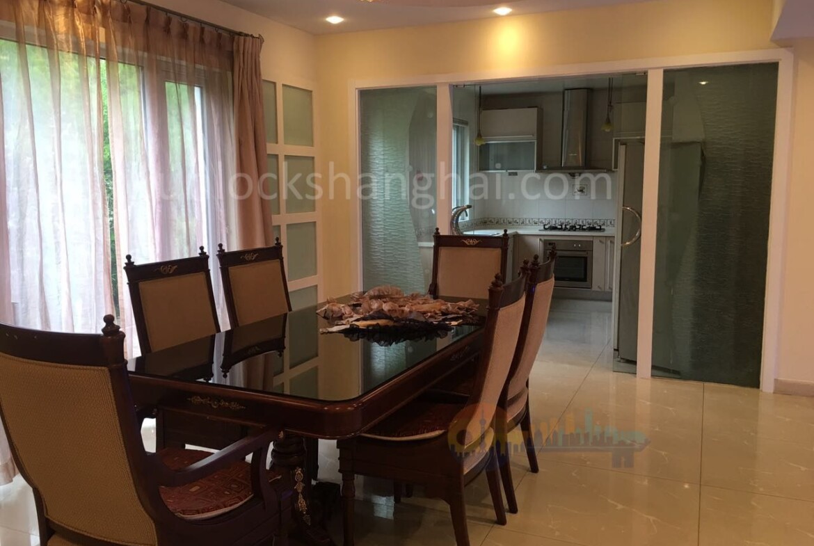 Set within the leafy avenues of Xijiao Hua Cheng Villa, this 4-bedroom, 4-bathroom home offers the space and calm that many expat families look for on Shanghai’s west side. The ground level unfolds into an inviting living and dining area with generous natural light and a seamless connection to the private outdoor space. The recently fully renovated interiors pair durable flooring with a neutral color palette, creating a clean backdrop for your own furnishings and art.