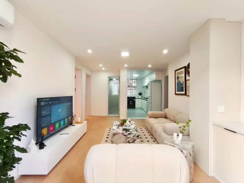 This fully renovated 2-bedroom, 1-bath apartment offers a harmonious blend of contemporary design and practical comfort. Nestled on Liuzhou Road, the residence is bathed in natural light thanks to its thoughtfully positioned windows and a spacious balcony that invites you to enjoy the fresh air – a rare find in Shanghai’s bustling urban environment.