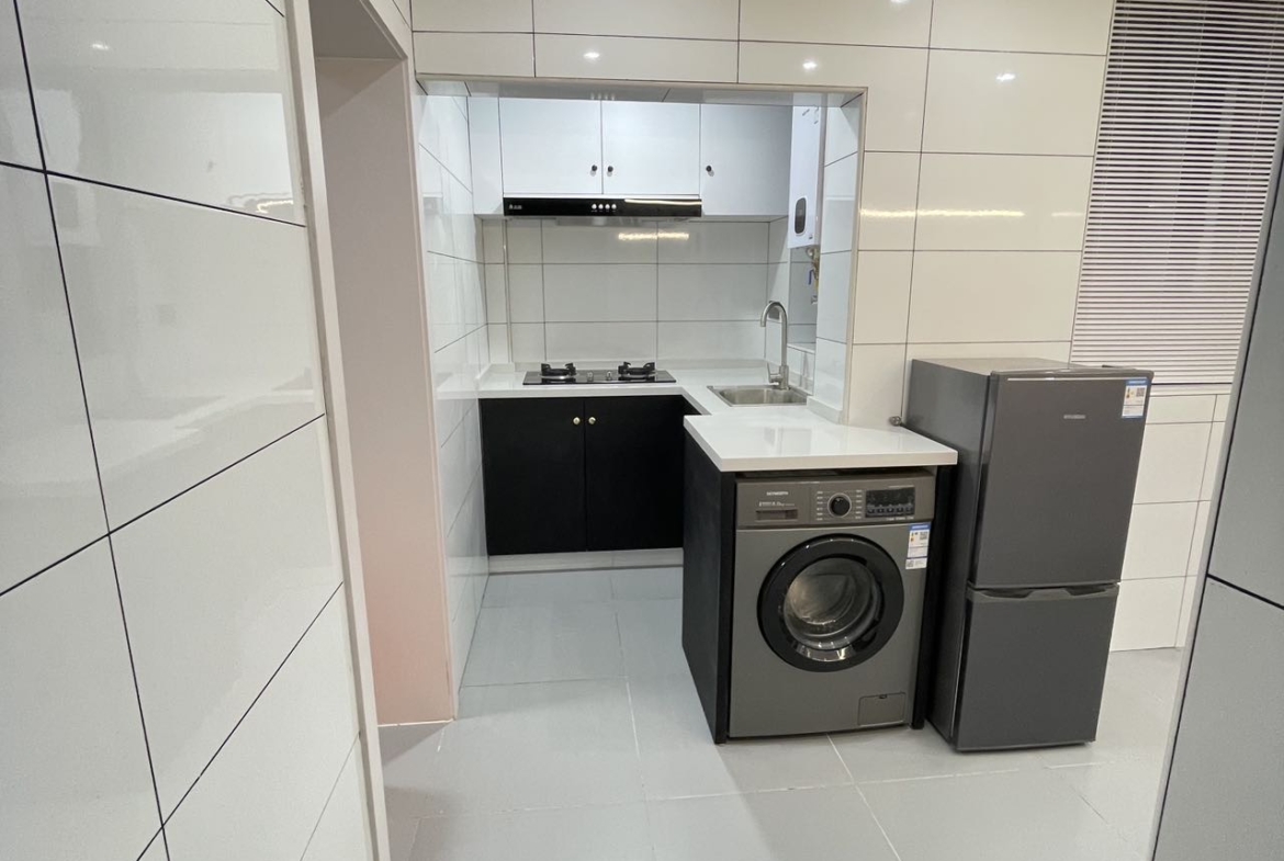 Both bedrooms are well-proportioned for a couple, young family, or a professional who wants a dedicated home office. Year-round comfort is ensured with air conditioning, addressing Shanghai’s humid summers and cool winters. The practical kitchen is fitted with contemporary cabinetry and ventilation, ready for your preferred appliances. A modernized bathroom keeps the morning routine smooth.