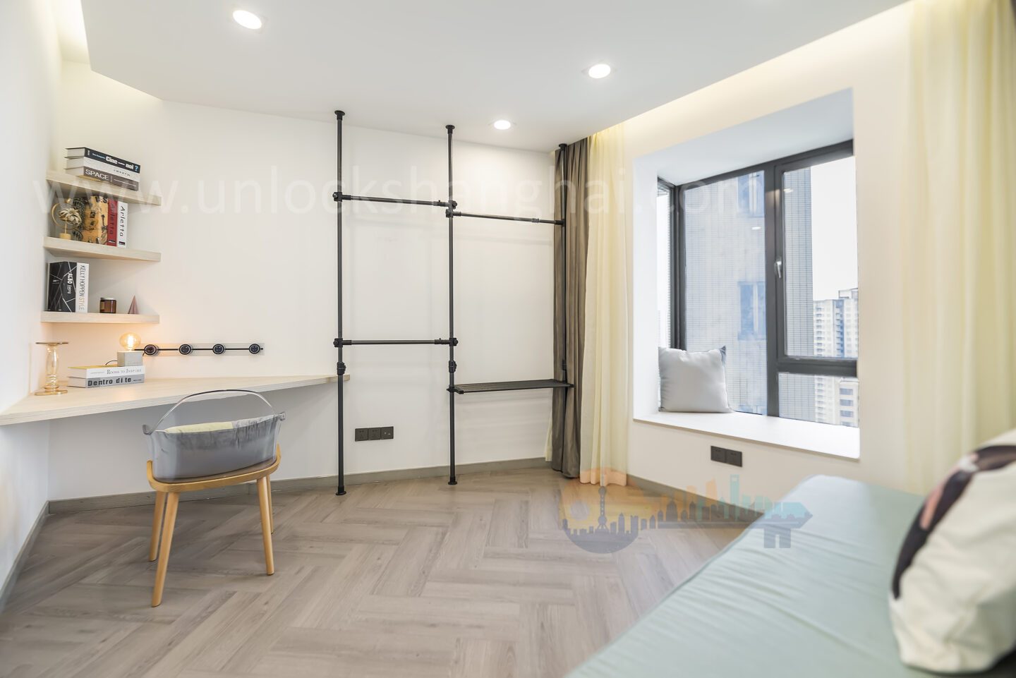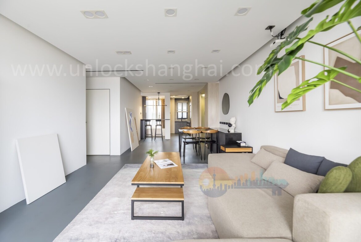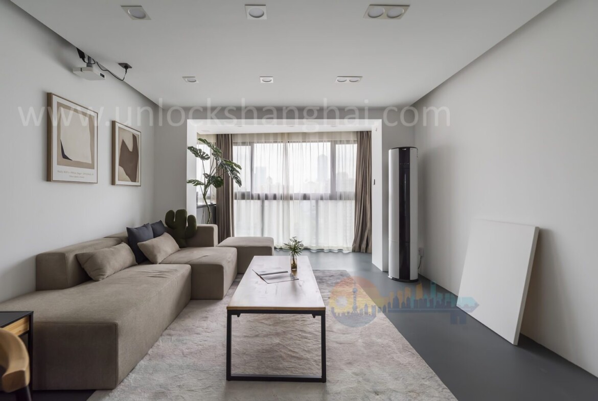 This contemporary 2-bedroom apartment in Jing’an Phoenix Garden embodies the perfect blend of comfort, style, and expat-friendly convenience. Step into a fully renovated space where floor-to-ceiling windows flood every room with natural light, offering panoramic street views over Shanghai’s dynamic cityscape. The open-plan living area is designed for both relaxation and entertaining, featuring understated modern furnishings and a soothing color palette that reflect a cosmopolitan lifestyle.