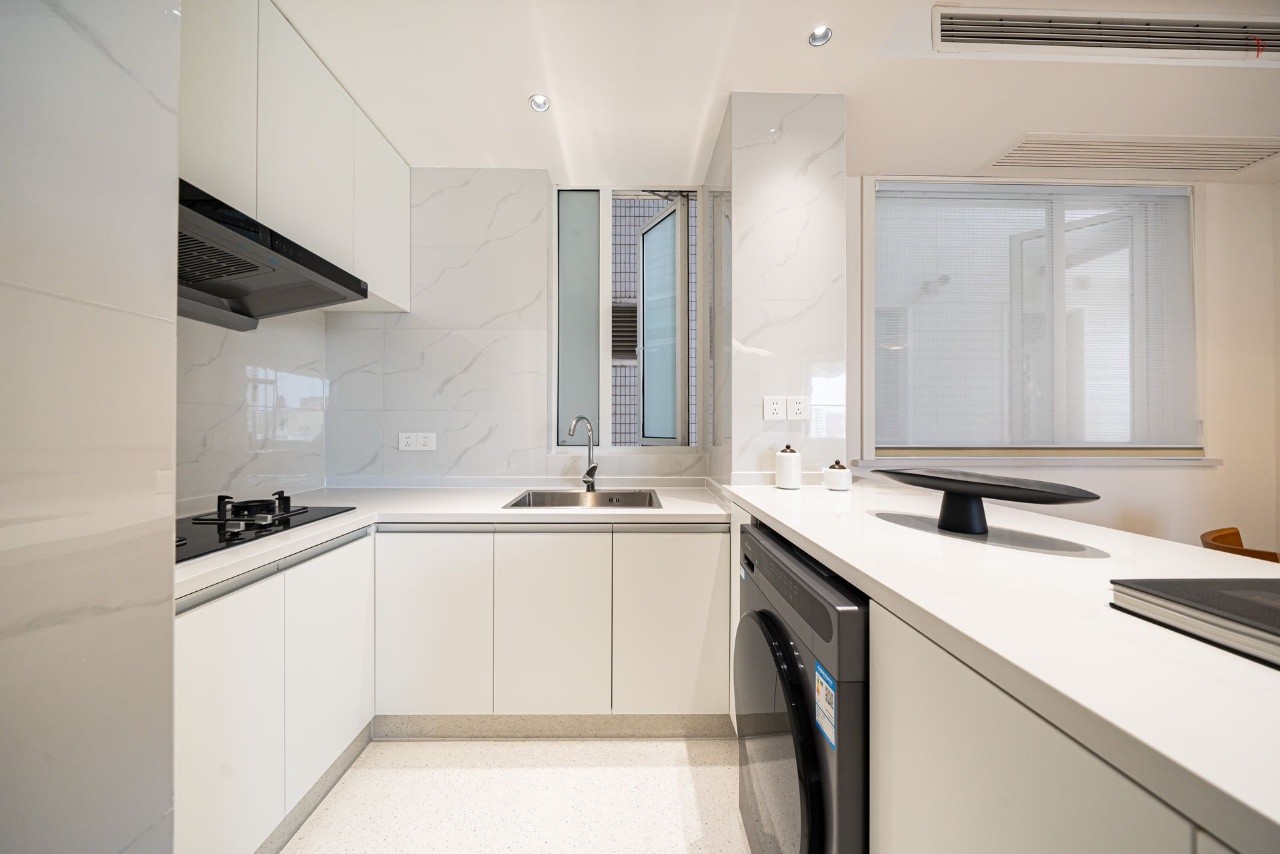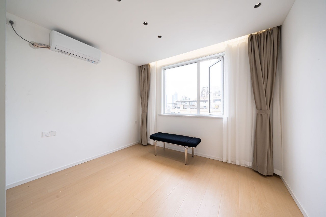 This modern 2-bedroom, 1-bath apartment is a true gem for expats seeking a stylish and convenient home in Shanghai. Located on the 20th floor, the residence boasts expansive floor-to-ceiling windows that flood the space with natural light while offering a captivating view of the city skyline. The fully renovated interiors feature sleek finishes and smart layouts designed to maximize both comfort and functionality.
