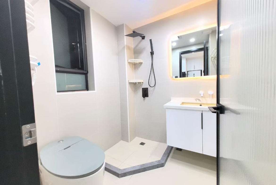 Step inside to find a bright living space equipped with efficient air conditioning, ensuring year-round comfort amidst Shanghai’s humid summers and chilly winters. The spacious balcony is a delightful feature, providing a private outdoor retreat where you can enjoy morning tea or unwind after a busy day, overlooking the vibrant street life below.