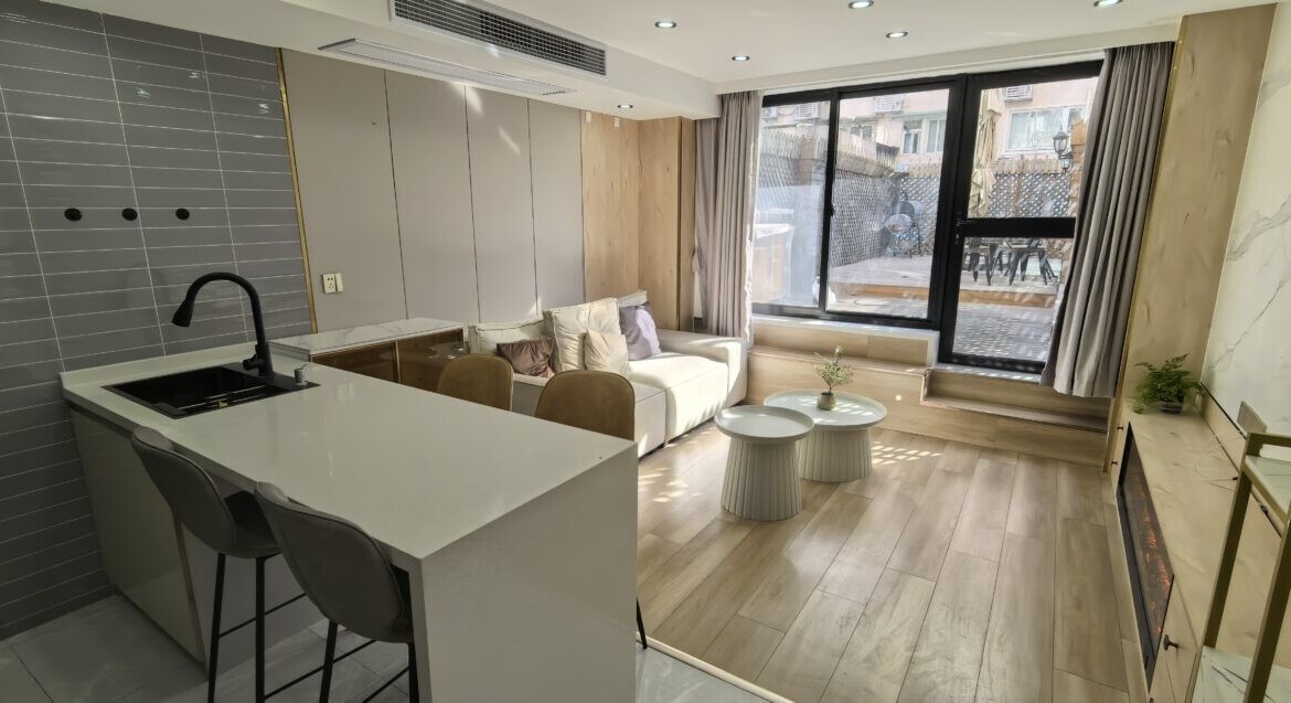 Equipped with efficient air conditioning, this home ensures comfort during Shanghai’s humid summers and chilly winters. The layout optimizes every square meter, providing a cozy yet functional living environment ideal for singles or couples who appreciate authentic local living with modern amenities. The fully renovated interiors feature tasteful finishes that respect the building’s heritage while introducing contemporary aesthetics.