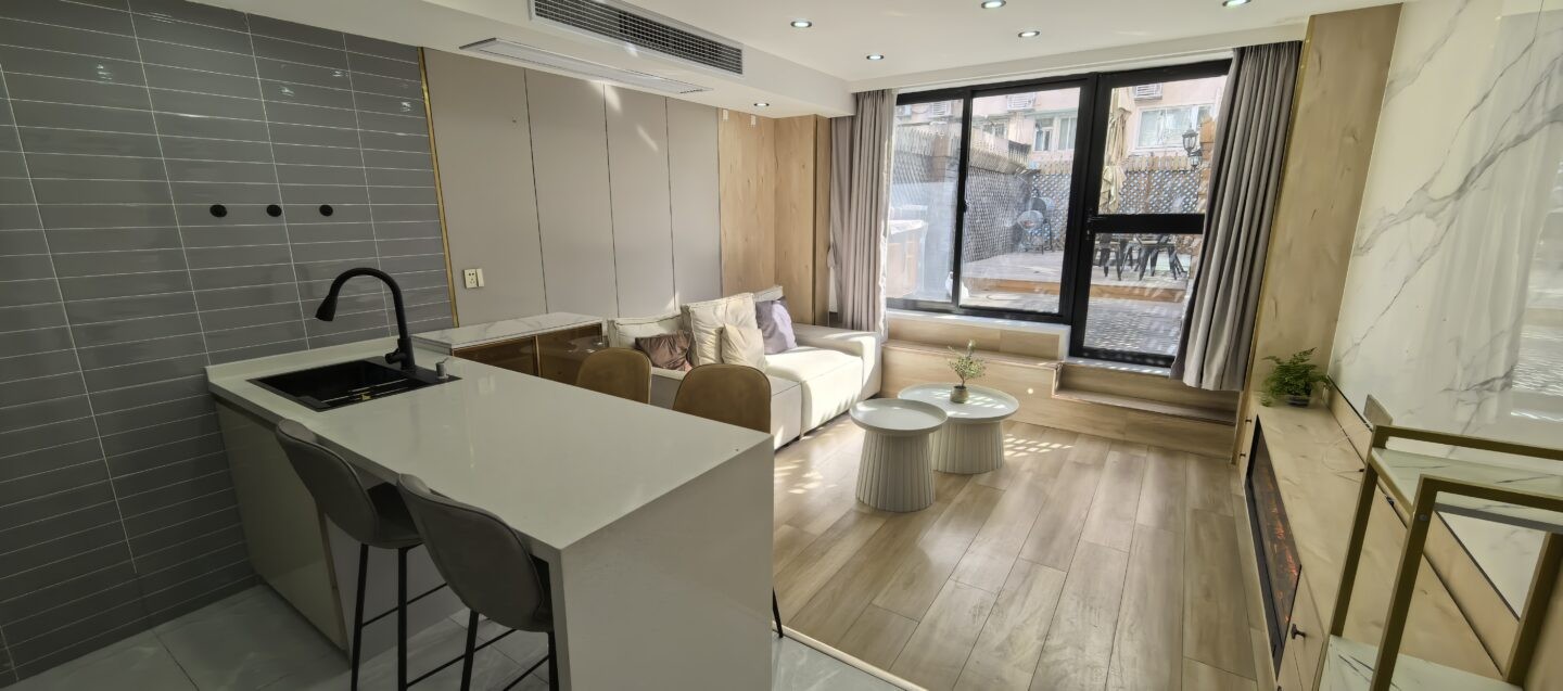 Discover a delightful blend of traditional Shanghai architecture and contemporary living in this fully renovated 1-bedroom, 1-bathroom old public apartment located on Wanhangdu Road. The apartment boasts floor-to-ceiling windows that flood the space with natural light, creating an airy and uplifting atmosphere throughout the day. Step onto your private balcony and terrace, perfect for savoring morning tea or unwinding with a book amid the bustling cityscape.
