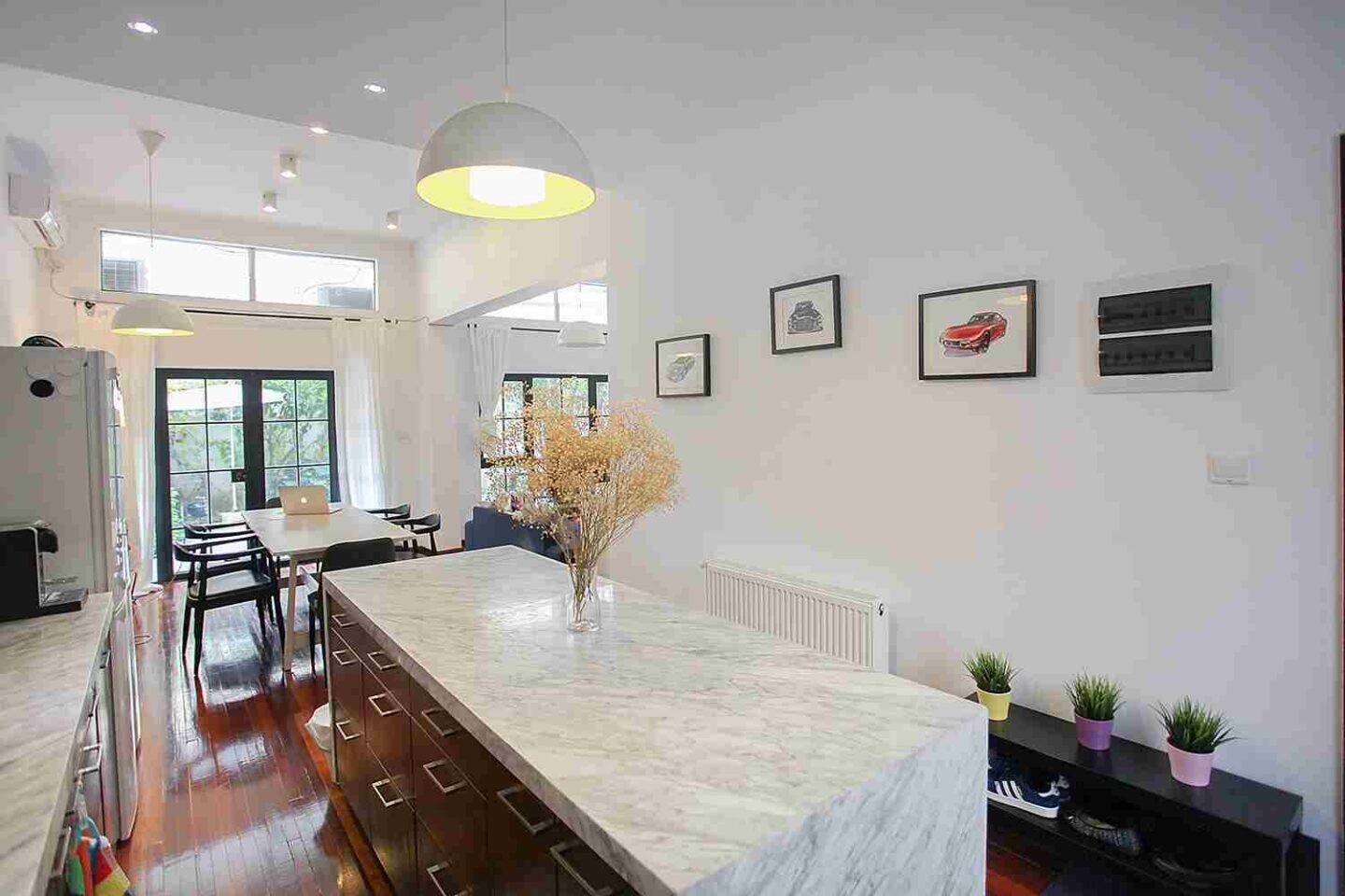Step through the charming entryway into a sunlit living area that flows seamlessly into a generous, private garden. This outdoor space provides a tranquil escape, perfect for relaxing mornings or hosting vibrant gatherings with friends and family. The interiors feature high ceilings and classic details, evoking the character-rich ambiance of the Former French Concession while delivering the practical features expats desire.