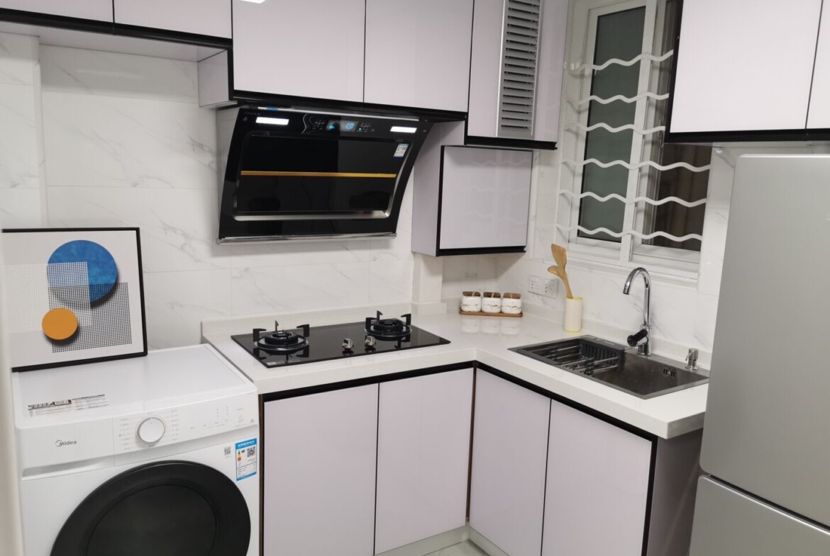 The apartment includes efficient heating — an essential feature for the chilly Shanghai winters — ensuring cozy comfort year-round. Designed to meet the needs of international tenants, the bathroom and kitchen have been updated with contemporary fixtures, blending style with functionality.