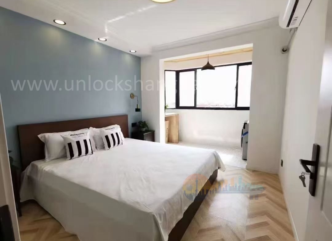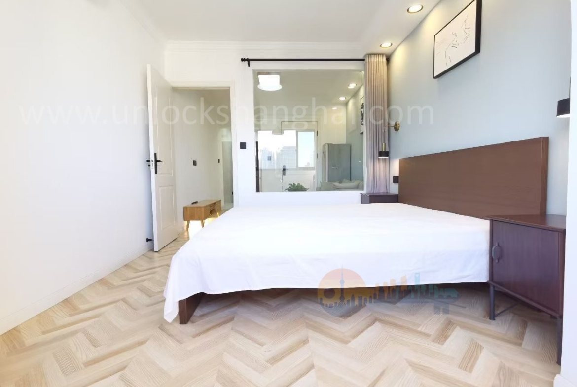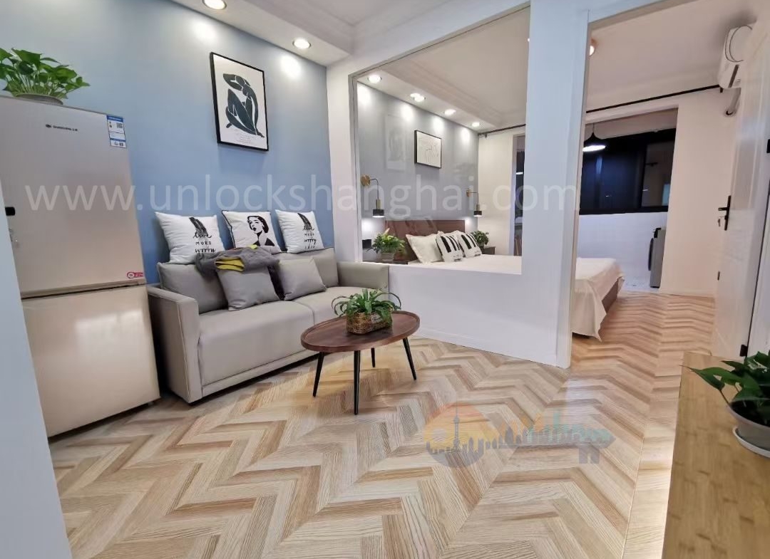 This elegant 1-bedroom, 1-bathroom heritage apartment on Wanhangdu Road beautifully blends Shanghai’s rich architectural history with contemporary amenities. Featuring reliable air conditioning and heating systems, the home ensures year-round comfort amid the city’s distinct seasonal climate. A spacious balcony extends the living space outdoors, perfect for morning coffee or unwinding after a busy day.