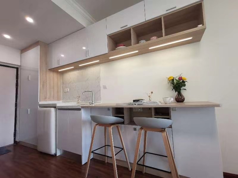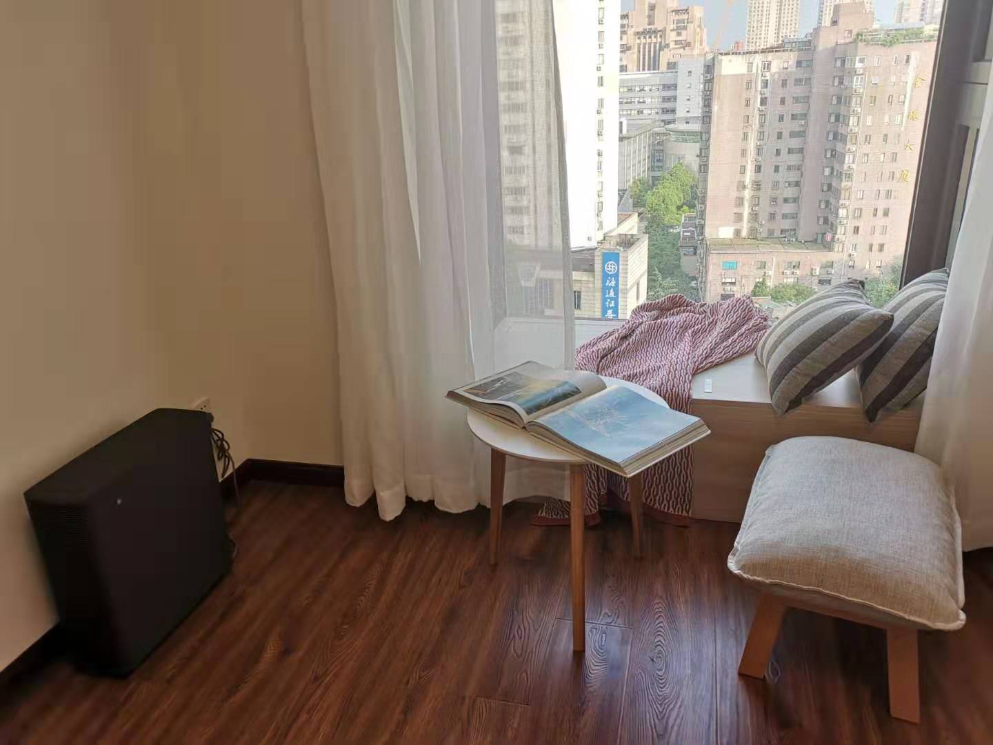 This Shanghai apartment for rent is a must-see. Key features include: a newly renovated interior, stunning skyline views from floor-to-ceiling windows, a location near the subway, and modern amenities like air conditioning and heating. Perfect for those seeking a bright studio near IAPM in the heart of Xuhui.