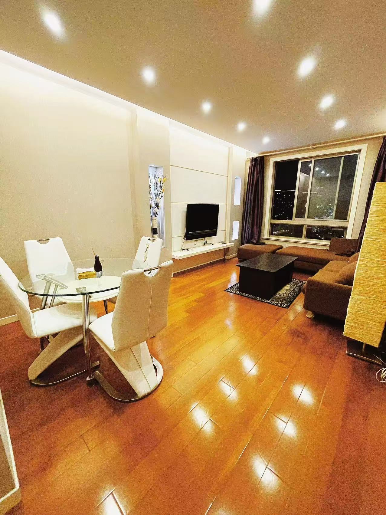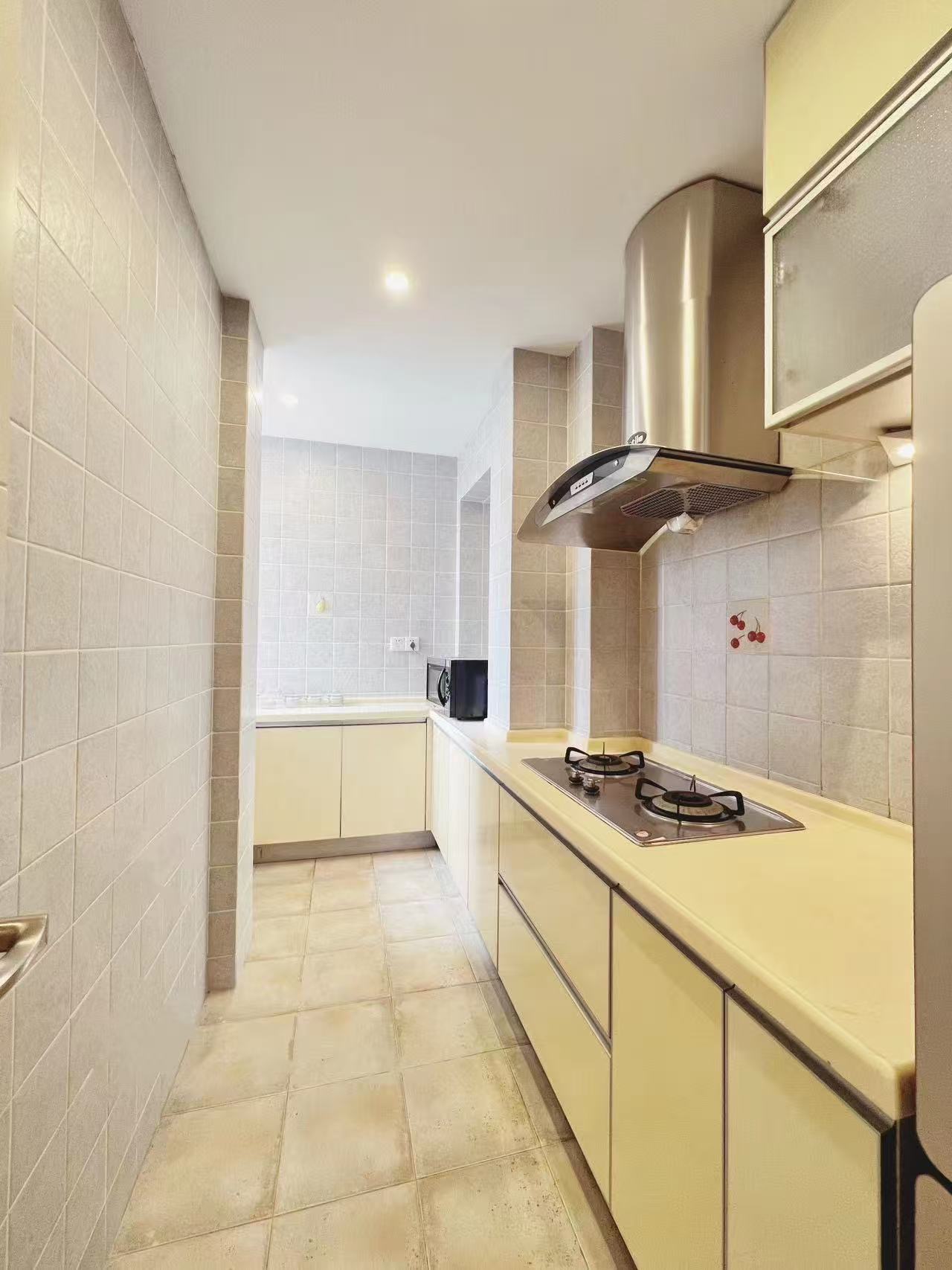 Discover urban living at its finest with this fully renovated 1-bedroom apartment in Yunhe Garden, Caojiadu. Situated on the 25th floor, the property offers stunning city views through expansive floor-to-ceiling windows that fill the space with natural light. The open-plan living area boasts stylish finishes with sleek wooden flooring, and the kitchen is equipped with modern appliances housed in minimalist cabinetry. Ideal for relaxation, the spacious bedroom features a comfortable layout, while the bathroom includes a full-sized bathtub for unwinding after a long day.