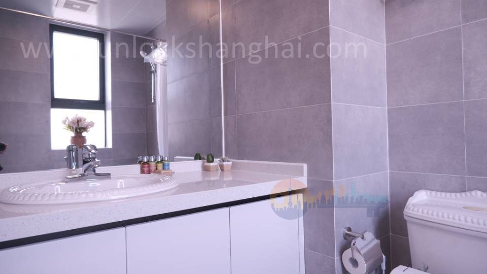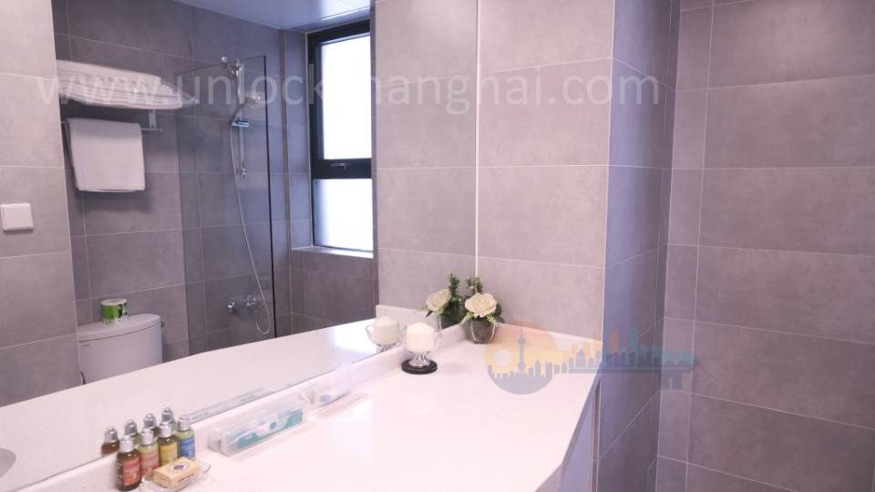 High-quality air conditioning ensures year-round comfort, while fast WiFi connectivity supports remote work and global communication needs. The kitchen and bathrooms are finished with contemporary fixtures, including a deep bathtub—ideal for relaxing after a bustling day in Shanghai. Ample natural light fills each room, highlighting elegant flooring and a neutral palette that complements a variety of personal styles.