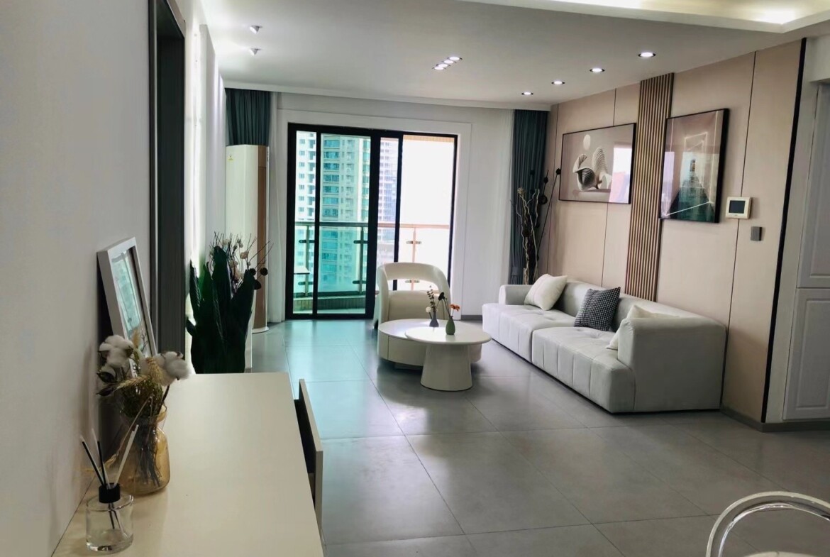 Elevate your Shanghai living experience in this exquisitely renovated three-bedroom, two-bathroom apartment, perched high on the 25th floor. Enjoy abundant natural light and expansive city vistas from your private balcony, perfect for your morning coffee or evening relaxation. The interior boasts top-tier air conditioning throughout, ensuring year-round comfort amid Shanghai’s changing seasons. This is a first rental since the full renovation, offering you an immaculate environment with contemporary finishes, brand new appliances, and thoughtfully designed storage solutions. Each room is crafted to maximize space and functionality, catering to the needs of modern international residents. The open-plan living area flows seamlessly onto the balcony, creating a welcoming space for entertaining guests or unwinding after a bustling day in the city.