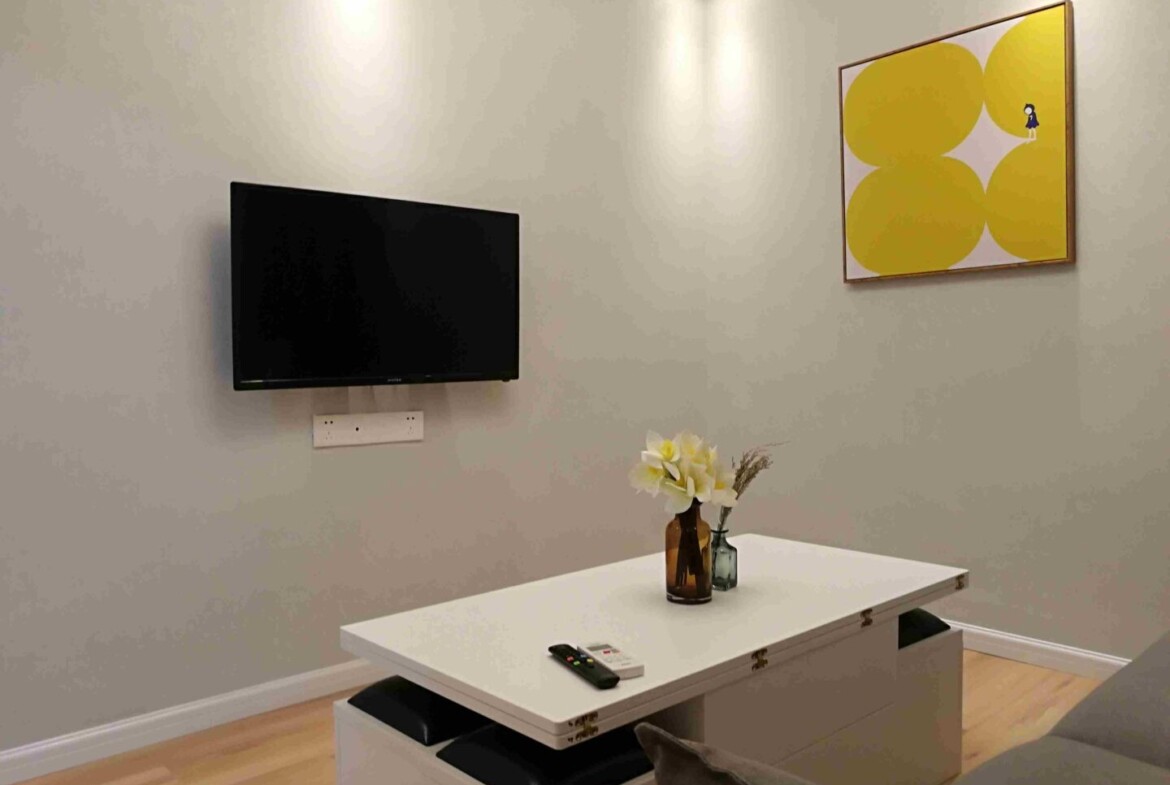 The open living area flows effortlessly into a well-appointed kitchen, perfect for entertaining guests or savoring quiet evenings at home. A serene bedroom provides a private sanctuary, while the modern bathroom features high-quality fixtures and a spa-inspired design. Whether you’re a professional seeking tranquility after a busy day or an adventurer eager to explore the city, this apartment is a sophisticated retreat in the heart of Shanghai’s dynamic Xuhui district.