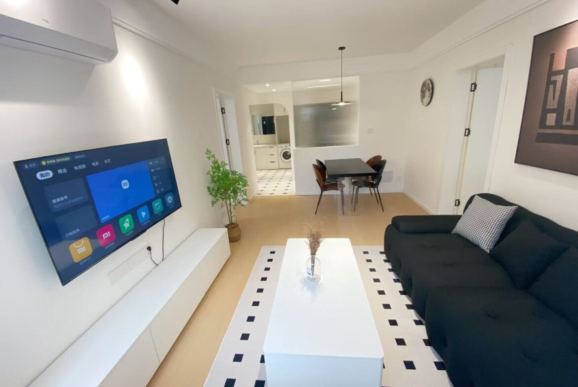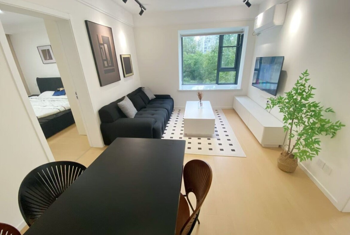 Welcome to a thoughtfully designed modern apartment that harmonizes contemporary living with everyday comfort. This fully renovated, two-bedroom home boasts a spacious layout, ideal for couples, young families, or professionals seeking an effortless transition to Shanghai living. Step inside to find sleek wood flooring and expansive windows, bathing the rooms in natural light and offering a calming retreat from the city bustle.