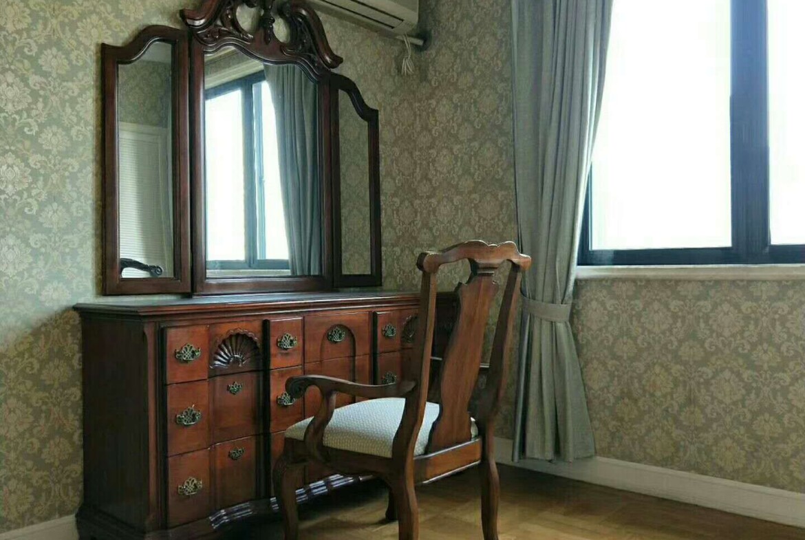 This spacious three-bedroom, two-bathroom serviced apartment on Luban Road offers a harmonious blend of old-world British elegance and modern Shanghai convenience. The interiors are thoughtfully curated with classical British-style furniture and decoration, featuring rich wood accents, tufted upholstery, and tasteful art pieces that evoke timeless sophistication. Each room flows seamlessly, maximizing both comfort and functionality for family living or entertaining guests.