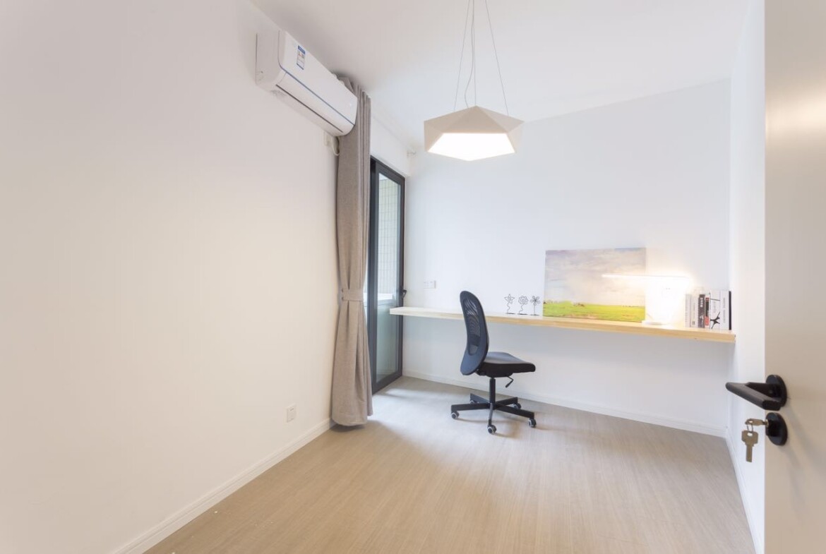 Air conditioning ensures year-round comfort, whether you’re escaping Shanghai’s humid summers or chilly winters. Multiple rooms open onto a sun-drenched balcony, perfect for morning coffee, herb gardening, or simply enjoying panoramic city views. The thoughtfully designed bathrooms feature modern fixtures, spacious vanities, and ample storage, underscoring this apartment’s blend of convenience and style.