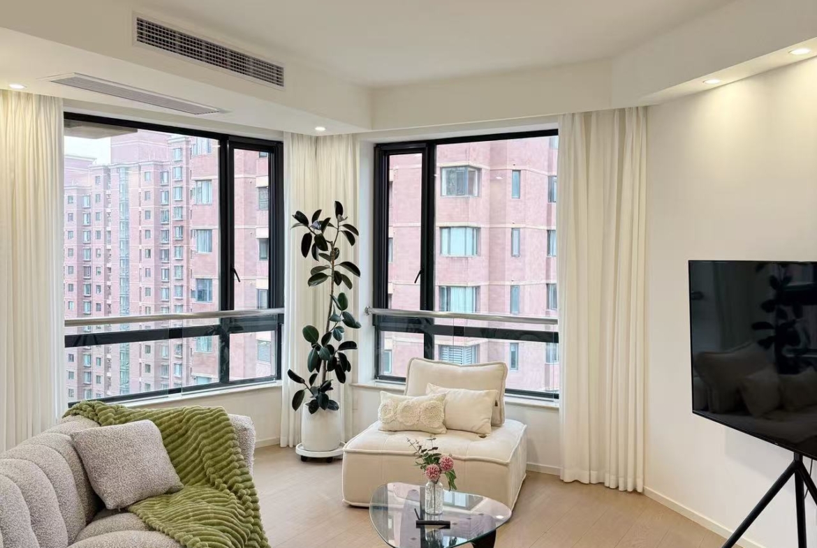 Effortless daily life: The apartment’s light-filled living space and balcony create a calm center for the week. With floor-to-ceiling windows, mornings feel fresh and evenings are naturally cozy. Heating and air conditioning keep the climate steady through Shanghai’s distinct seasons, and dependable WiFi supports remote work and international calls.