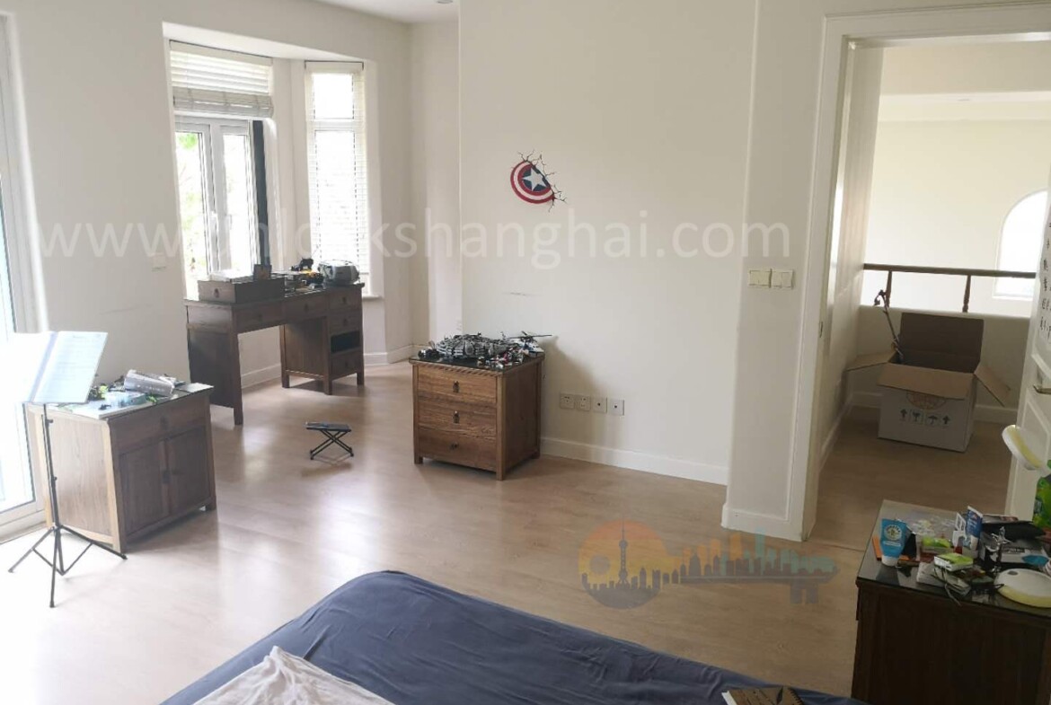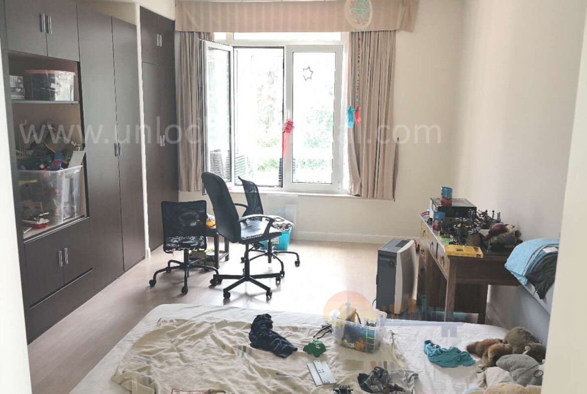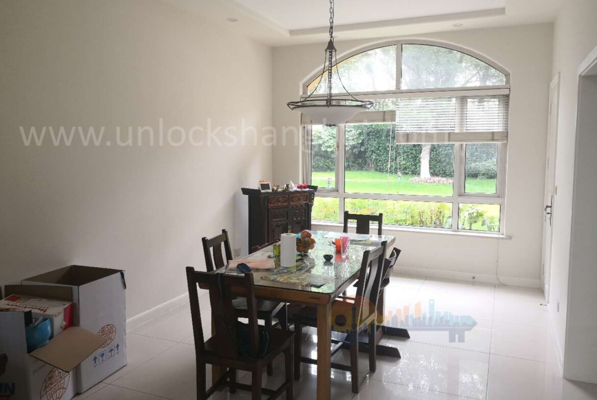 Remote work and streaming are covered with fast WiFi readiness, while the layout offers a quiet room for an office or guest suite. Large windows frame tree-lined internal roads, reinforcing the villa’s peaceful setting. Outdoors, a paved terrace transitions seamlessly from indoor entertaining, and the lawn is easy to maintain. Thoughtful details such as blackout curtains, built-in wardrobes, and practical storage make day-to-day living smoother. If you are seeking suburban calm within reach of international schools and the Hongqiao transport hub, this home pairs convenience with genuine breathing space.