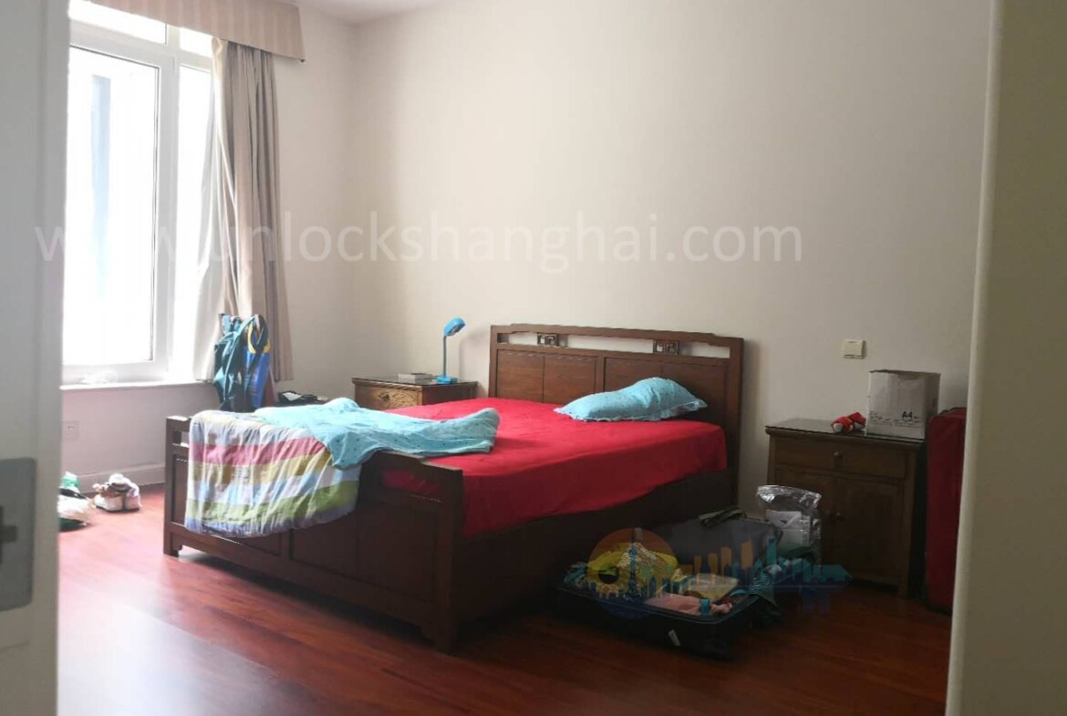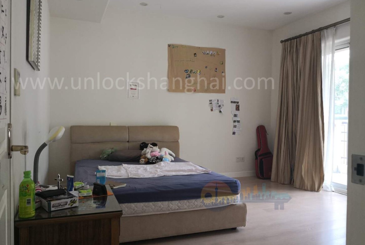 Central air conditioning and a dedicated heating system ensure year-round comfort, a meaningful advantage during Shanghai’s humid summers and cooler winters. The contemporary kitchen is designed for everyday practicality, with full-size appliances, ample storage, and a breakfast zone that suits busy mornings. Upstairs, well-proportioned bedrooms give each family member privacy, while four well-appointed bathrooms include a bathtub for relaxed evening soaks or children’s bath time.