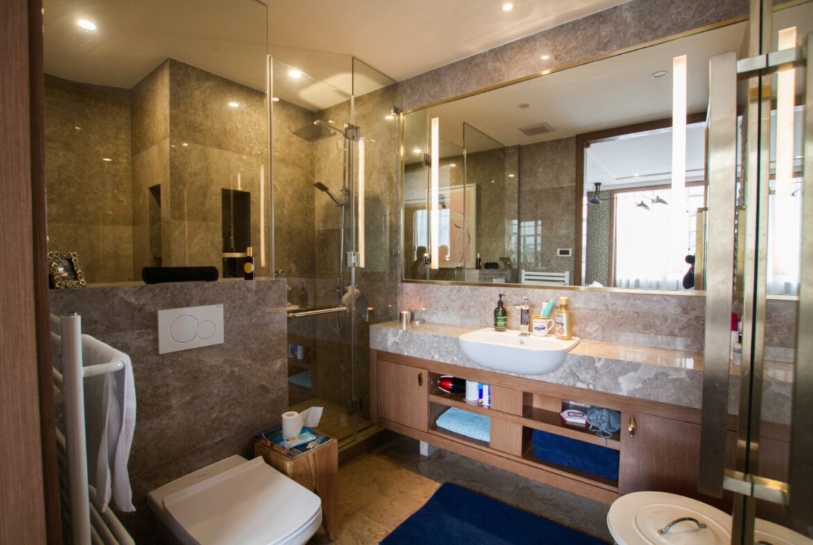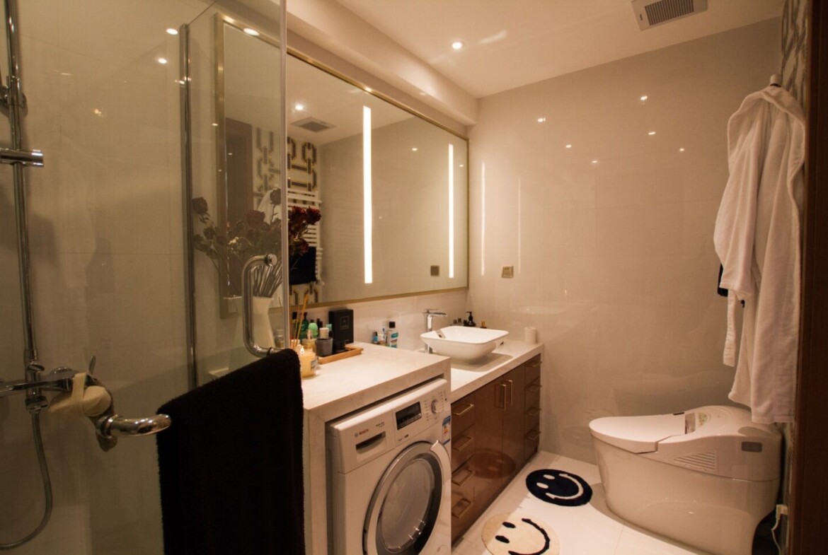 The apartment features a spacious bathtub, ideal for unwinding after a busy day exploring the city. Central air conditioning and heating systems ensure year-round comfort through Shanghai’s humid summers and chilly winters. The unit has been fully renovated with meticulous attention to detail, preserving original moldings and hardwood floors while integrating efficient, contemporary amenities.