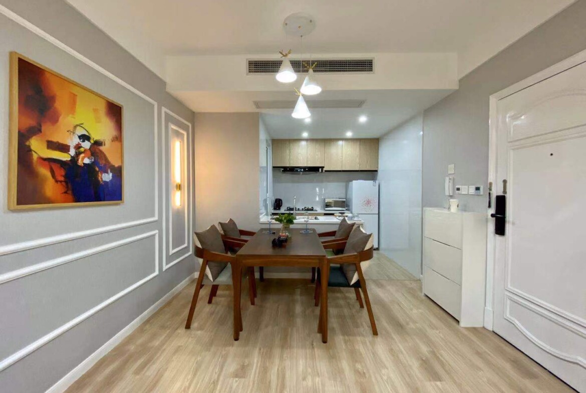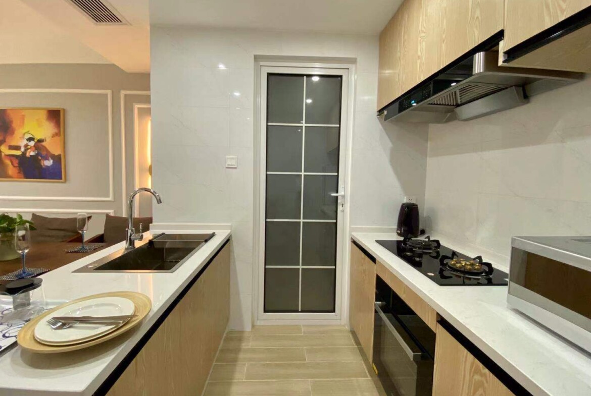 Climate control is effortless with dual-function air conditioning and heating, keeping you cool in humid summers and cozy through Shanghai’s damp winters. High-speed WiFi is already in place, supporting smooth remote work and streaming. The sleek, fully renovated kitchen features modern cabinetry and durable worktops, with room for daily cooking routines without clutter. Clever storage solutions throughout help maintain an uncluttered, minimalist aesthetic.