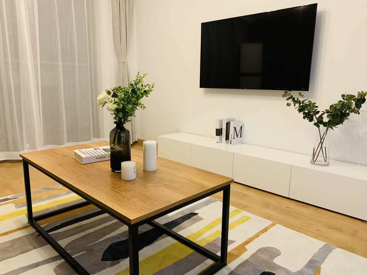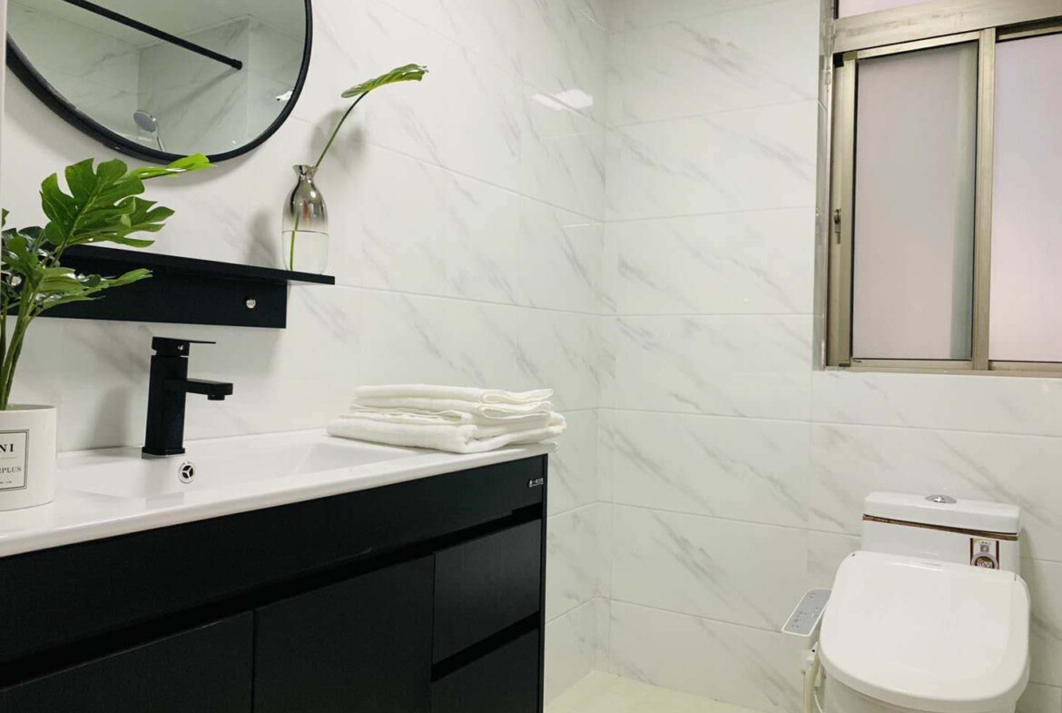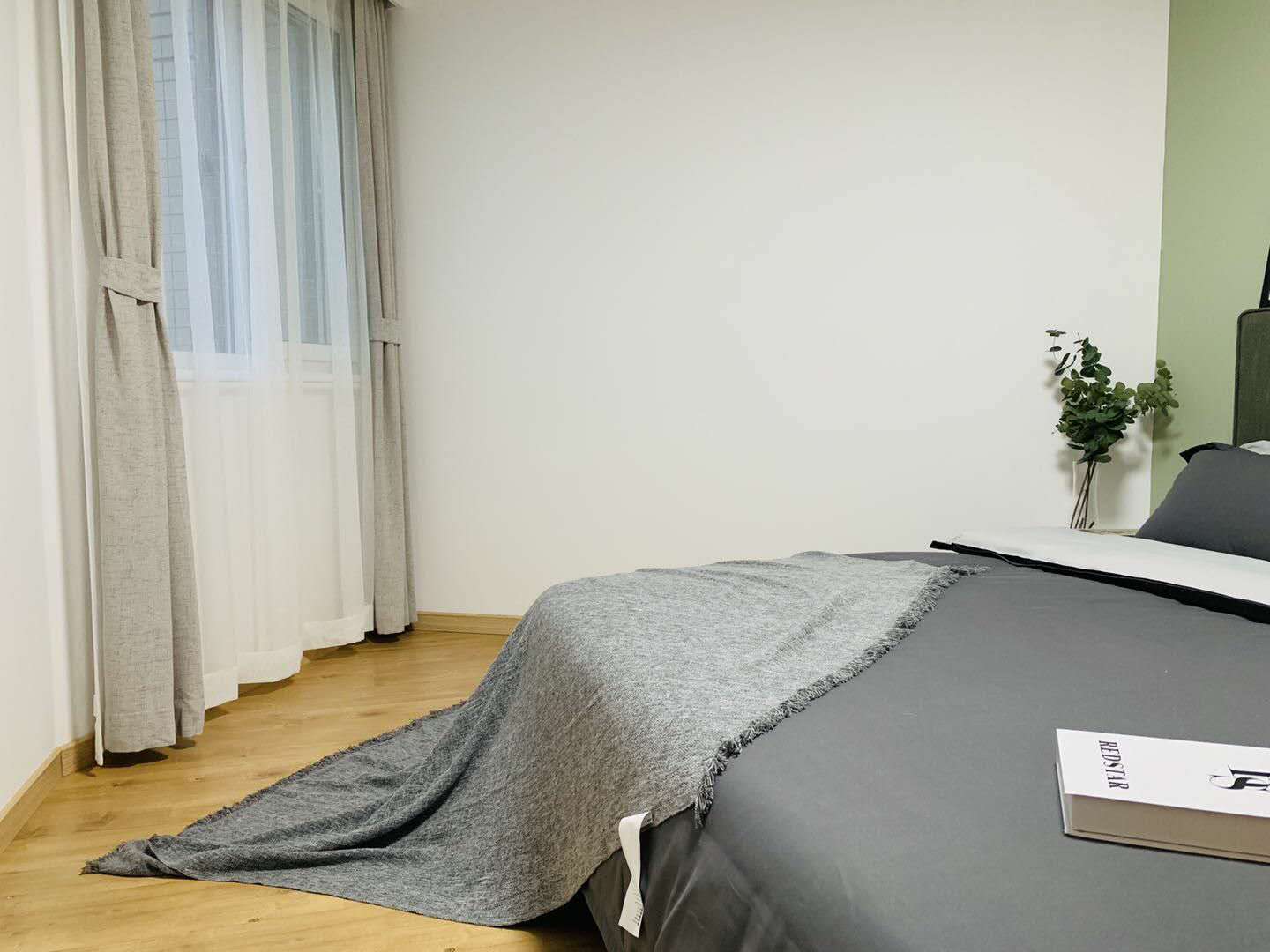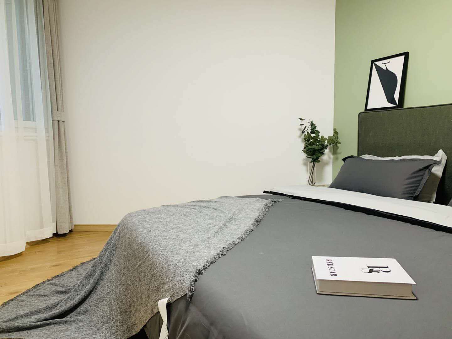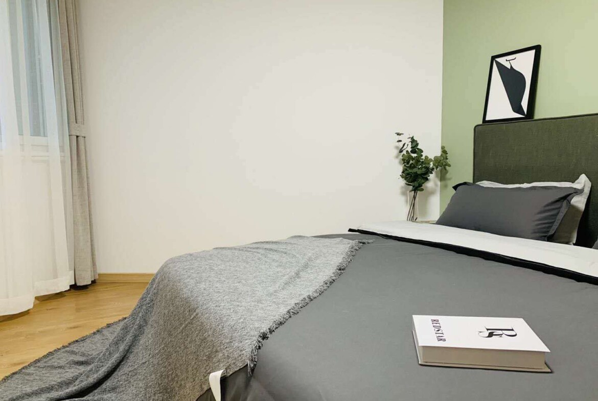 This first-rental, fully renovated two-bedroom, one-bath home in Mandarine City Phase 1 is a refined base in Hongqiao, designed for residents who value light, quiet, and practical functionality. Floor-to-ceiling windows frame leafy internal vistas, filling the open-plan living and dining area with soft, natural light throughout the day. The calm, neutral palette and quality finishes create a soothing backdrop that pairs well with contemporary or classic furnishings.