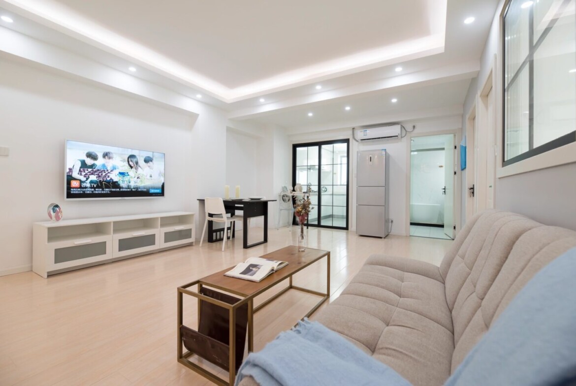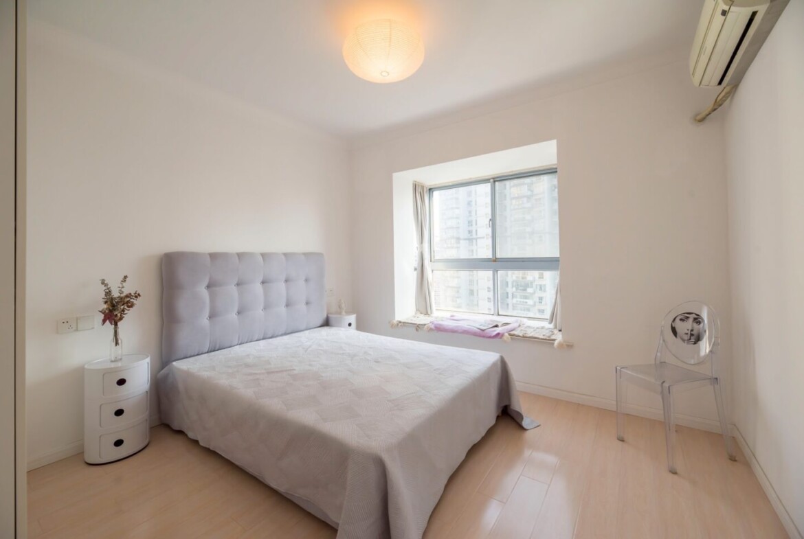 This thoughtfully fully renovated 2-bedroom, 1-bath apartment in Huicui Garden balances modern comfort with practical everyday living in the heart of Xujiahui. The layout creates distinct zones for relaxation and productivity: a welcoming living area for unwinding, a flexible second bedroom ideal as a guest room or home office, and a tranquil primary bedroom with ample wardrobe space. Large windows usher in soft natural light, while air conditioning keeps each room comfortable through Shanghai’s changing seasons.