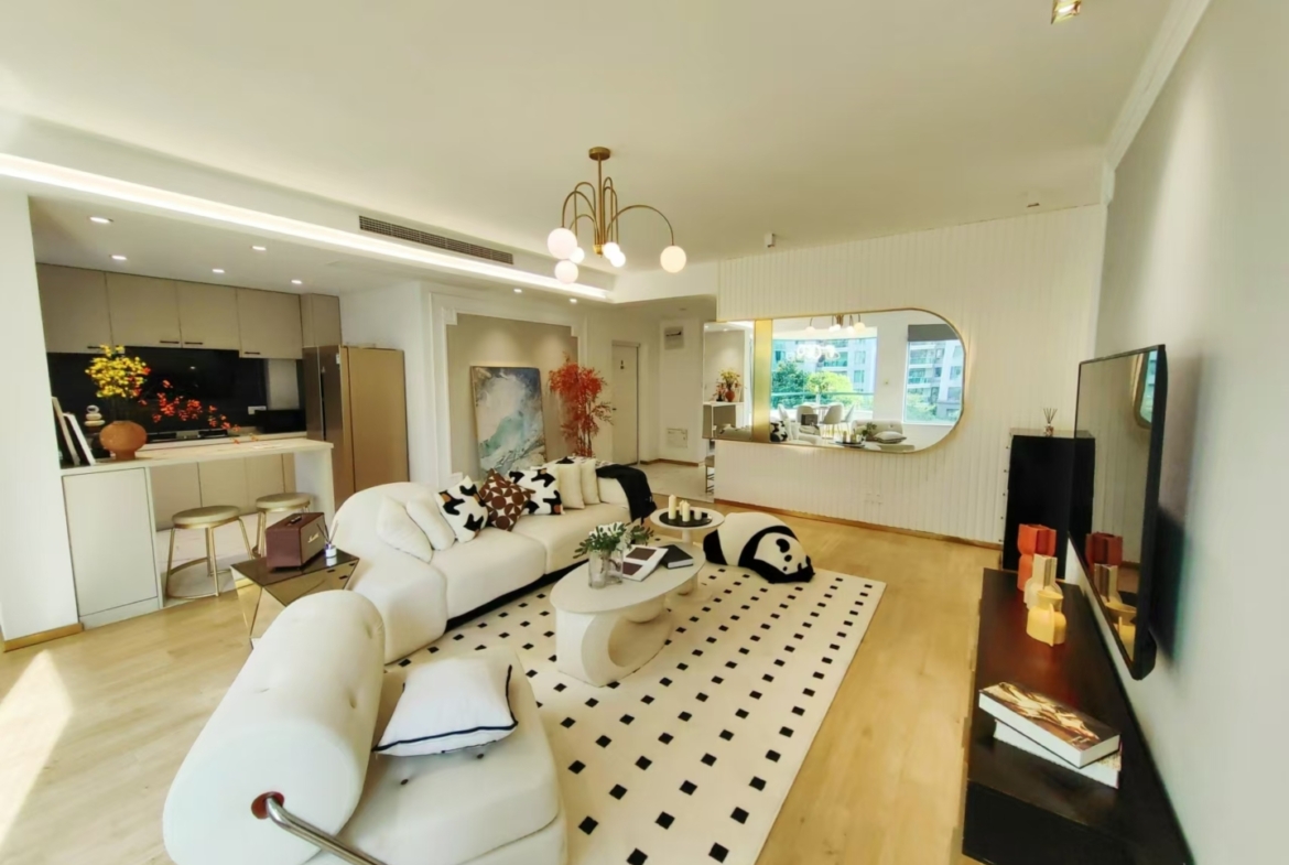 Bright, practical, and thoughtfully upgraded, this three-bedroom, two-bath home in Hai Jing Yuan pairs calm garden outlooks with the conveniences expats value. A generous living–dining area flows naturally toward a balcony, bringing in soft daylight and framing landscaped greenery—a serene backdrop for coffee, calls, or quiet evenings. The fully renovated interior favors clean lines, warm flooring, and discreet storage, creating an uncluttered, welcoming space that’s easy to furnish and personalize.